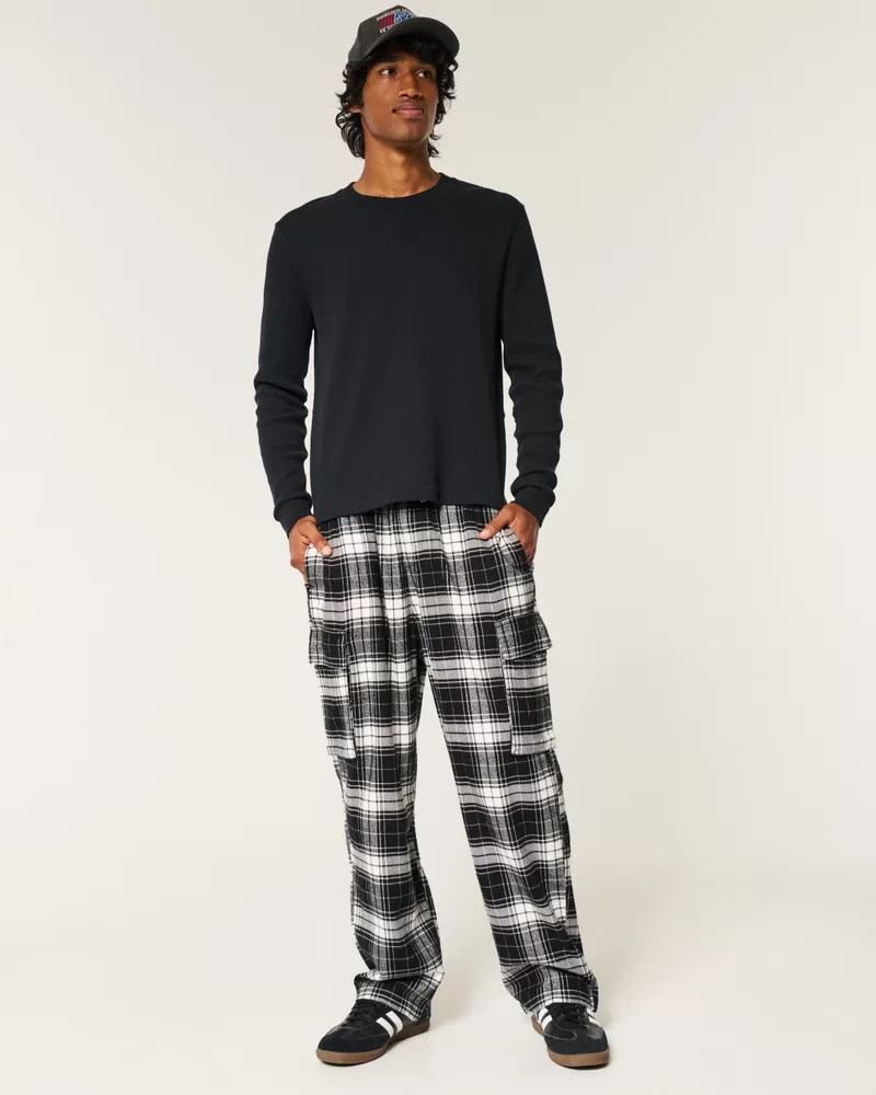 Ultra-comfortable and super soft flannel pajama pants with a drawstring waist and side cargo pockets.