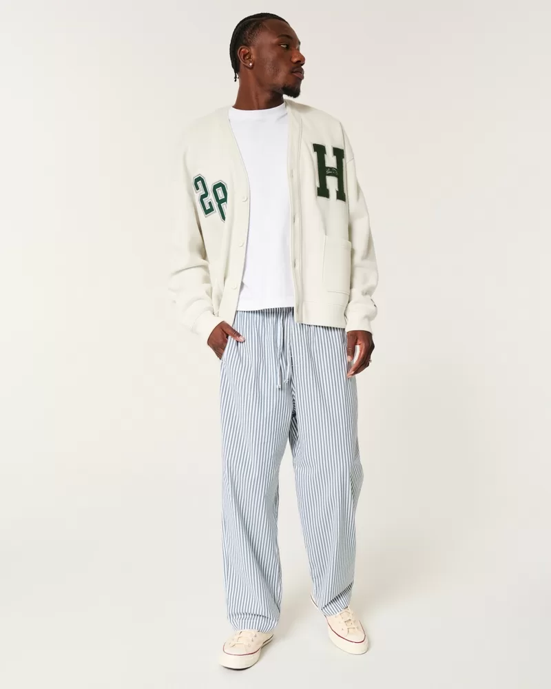 Ultra-comfortable, super soft pajama pants in poplin fabric, designed with a wide-leg silhouette. Drawcord waist, pockets.