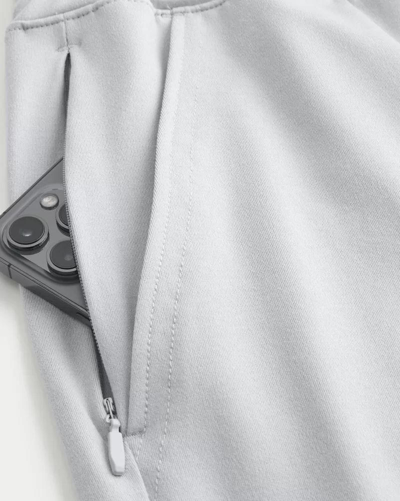 Ultra-comfortable sweatpants in super soft active fabric. Drawstring waist, pockets, right zipper pocket.
