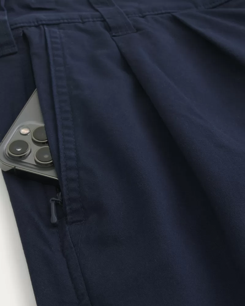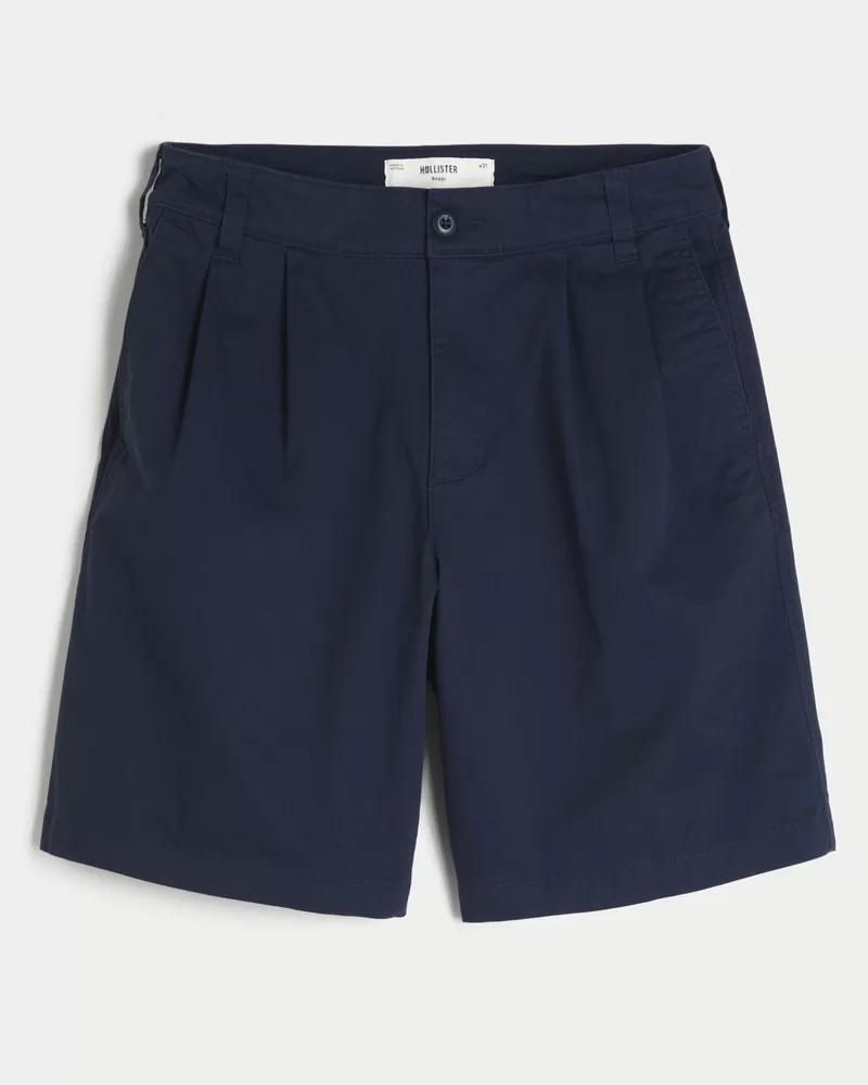 Classic, comfortable Bermuda shorts designed with a baggy leg and at-the-knee length. Pleats at the waist for a tailored look.