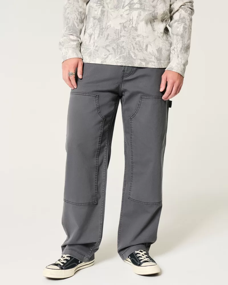 Classic carpenter-style pants in twill fabric designed with a baggy leg. Reinforced knee stitching, left hammer loop, extra pockets at right leg, pockets.
