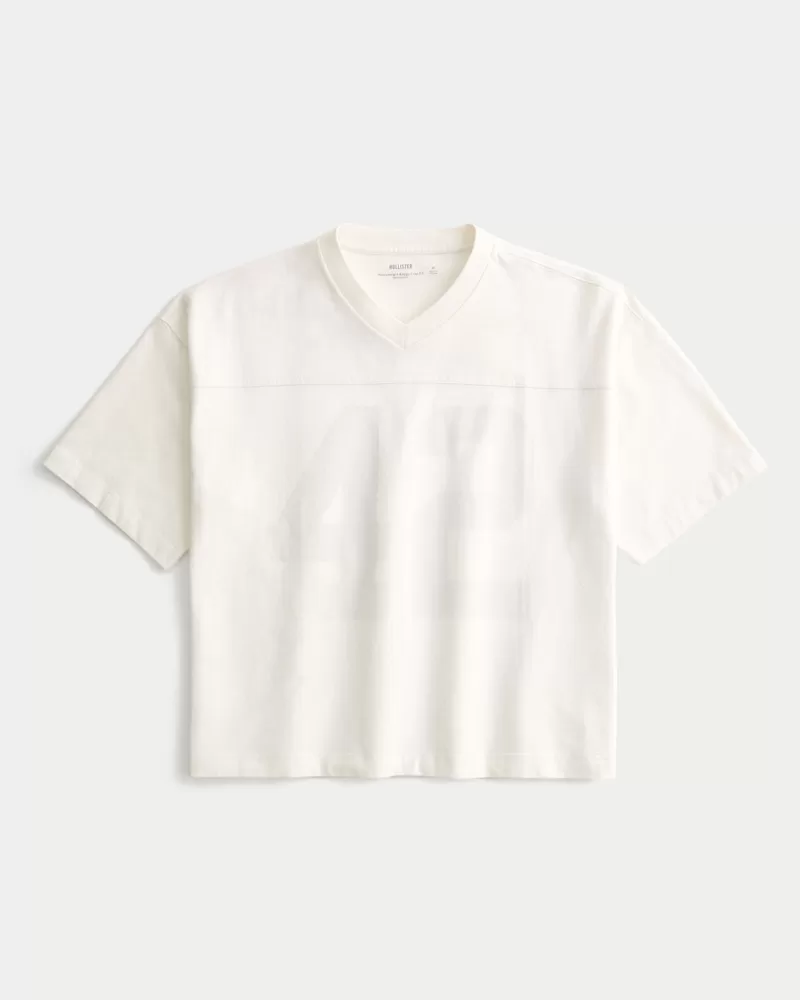 A super soft, heavyweight 100% cotton football jersey-style tee featuring a sporty number print graphic and v-neckline. Short sleeves. Baggy Fit.