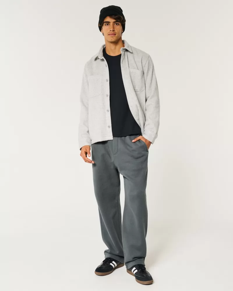 Super soft fleece sweatpants designed with a baggy leg and drawstring waist. Right zipper pocket.
