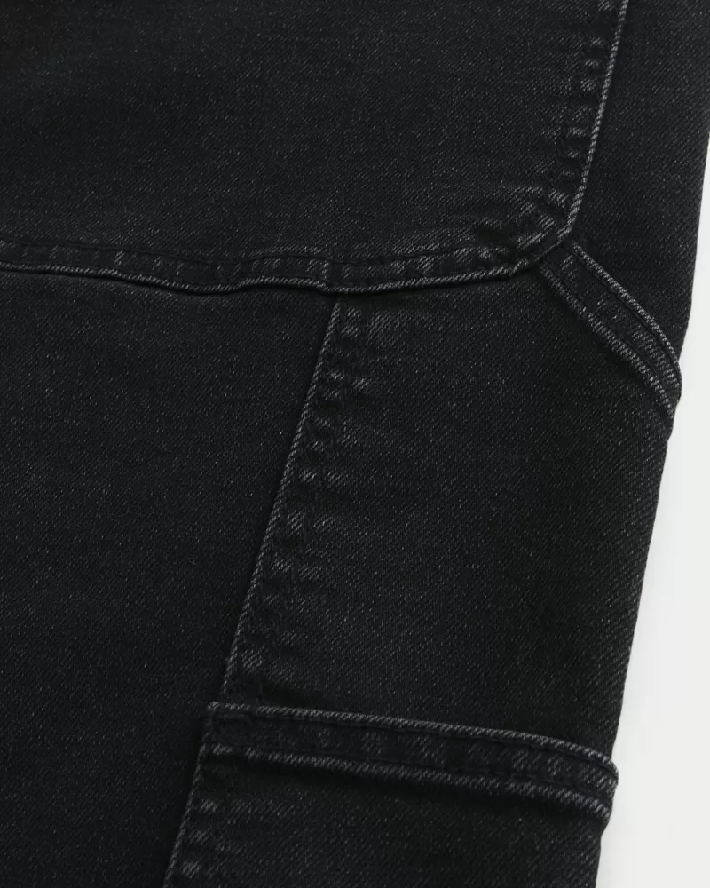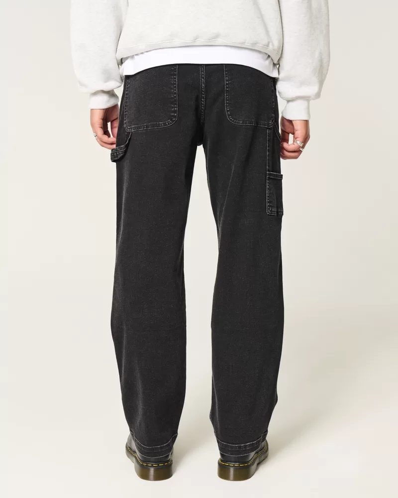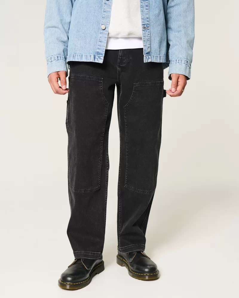 Ultra-comfortable carpenter-style jeans in black, designed with a baggy leg. Reinforced knee stitching, left hammer loop, extra pockets.