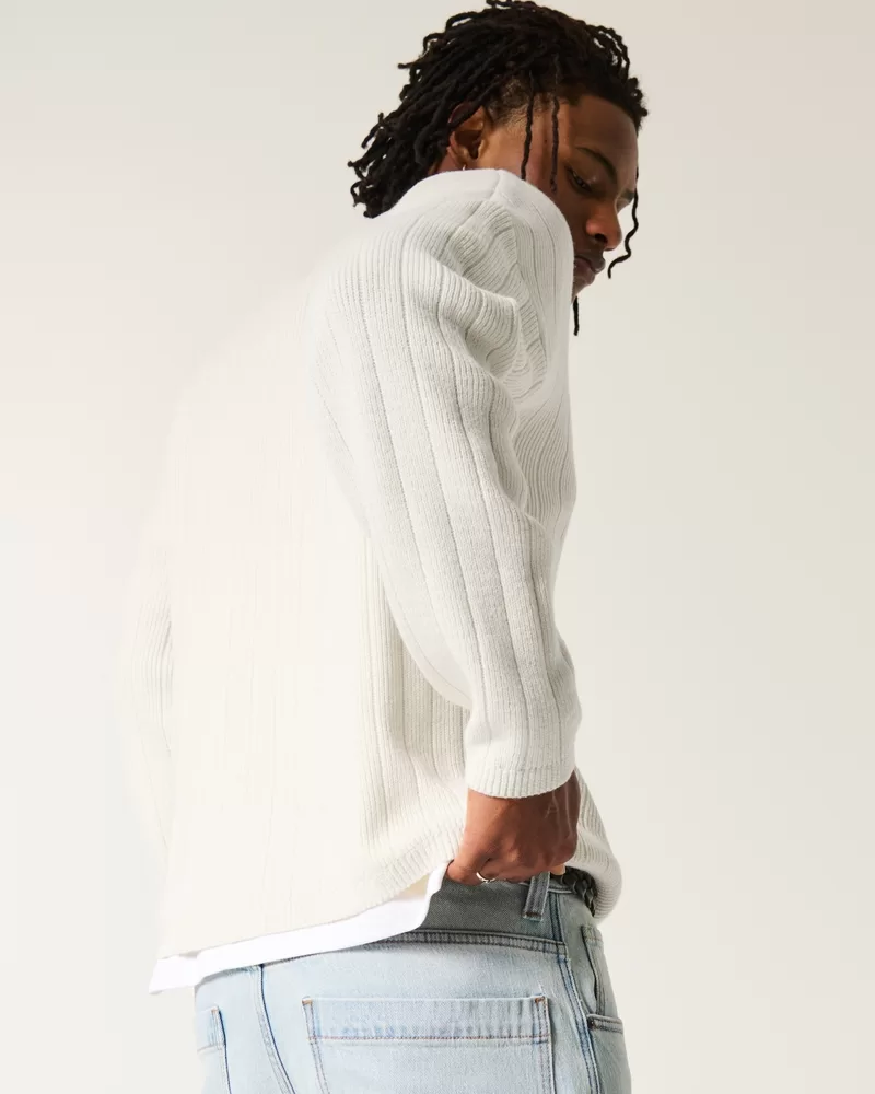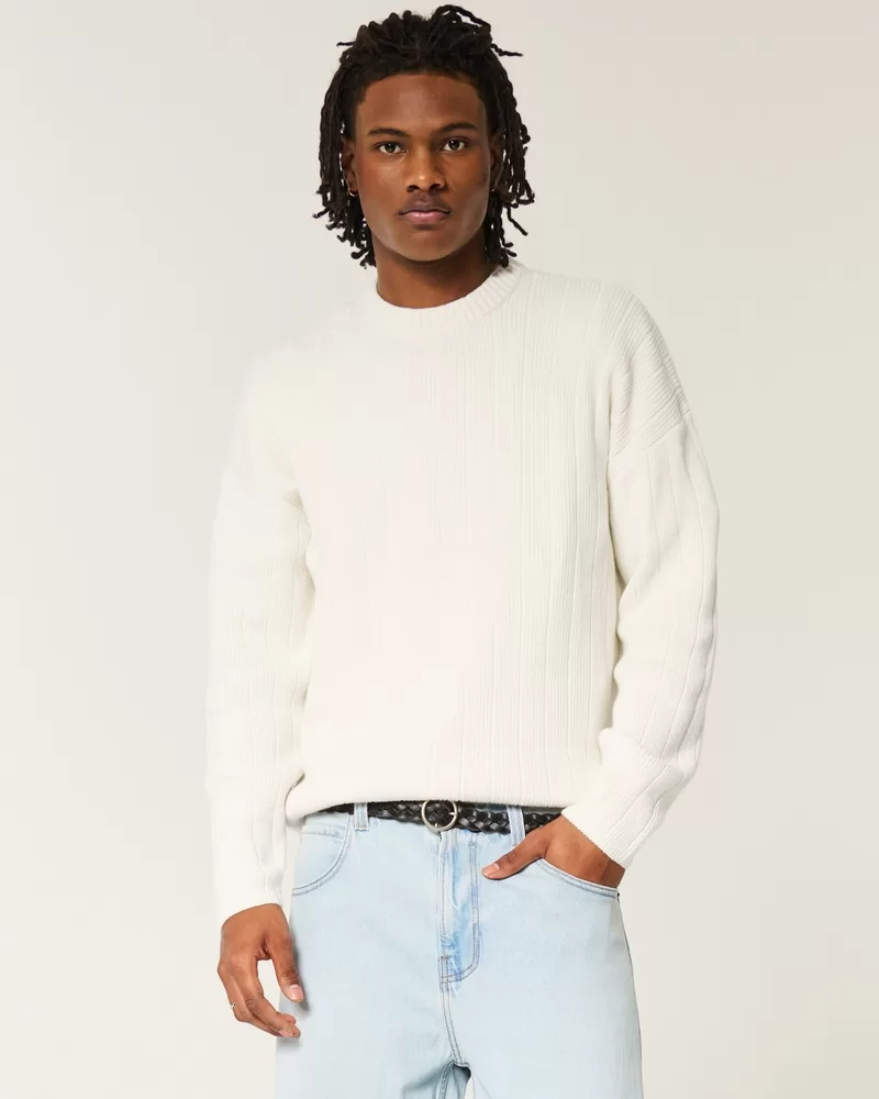 A super soft sweater with ribbed texture and a crew neckline. Long sleeves. Boxy Fit.