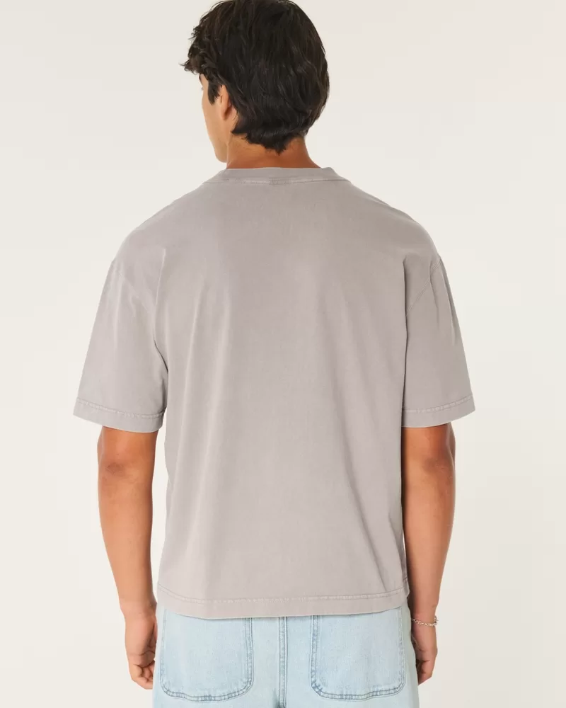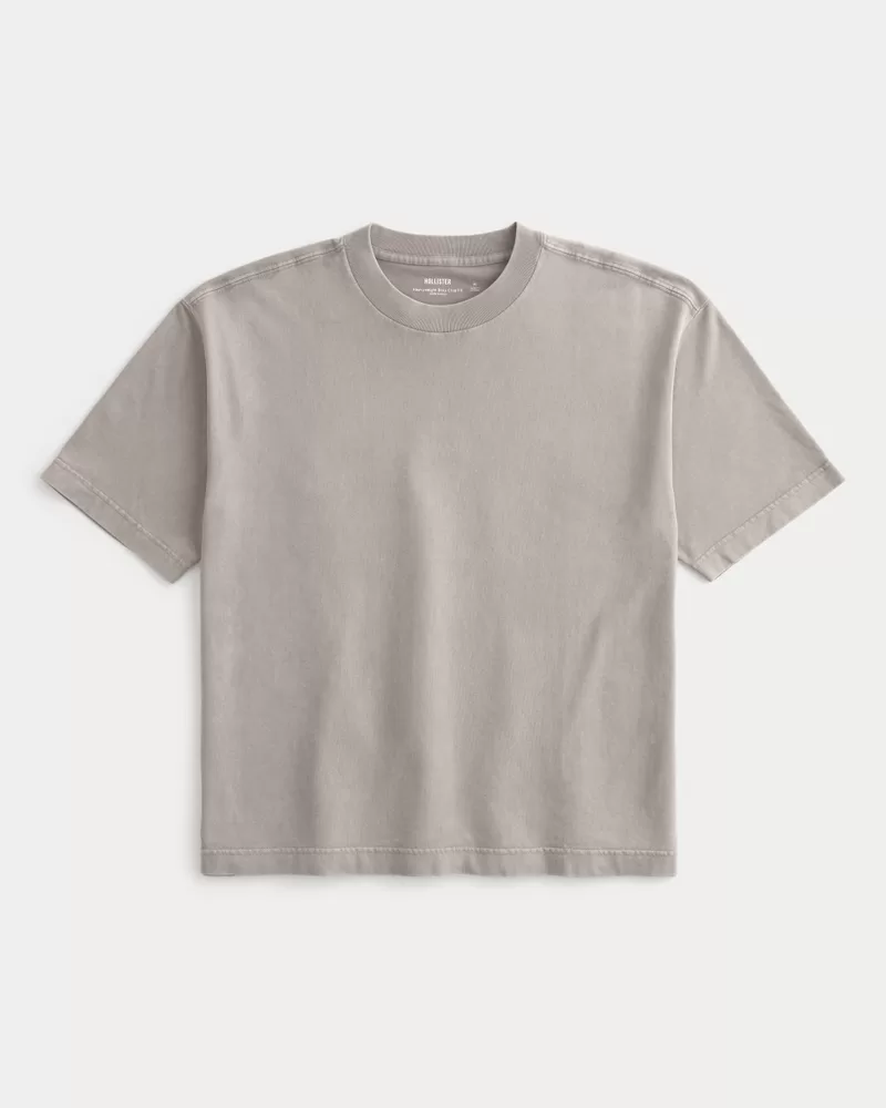 Made with heavyweight 100% cotton, this tee features short sleeves, a crew neckline and a cropped length. Washed look. Boxy Fit.