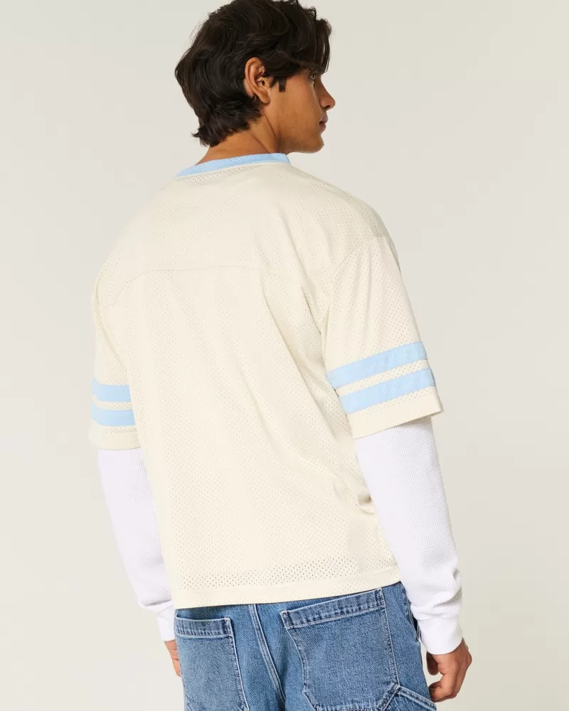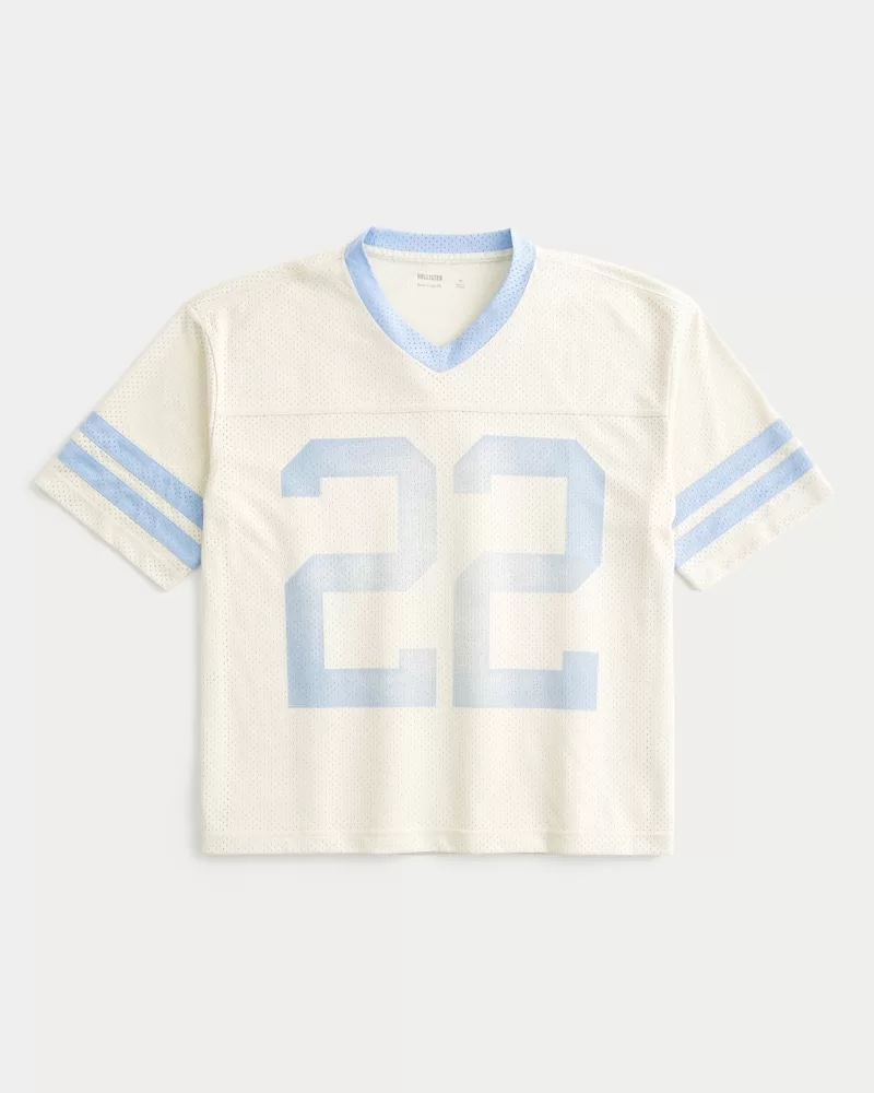 Boxy Crop Mesh Graphic Football Jersey