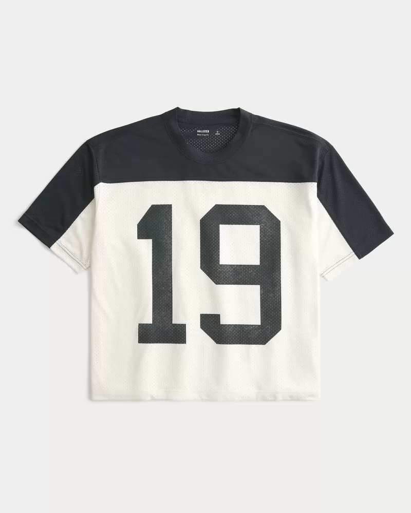 A classic jersey in soft mesh fabric, featuring a print number graphic. Crew neckline. Boxy Crop Fit.