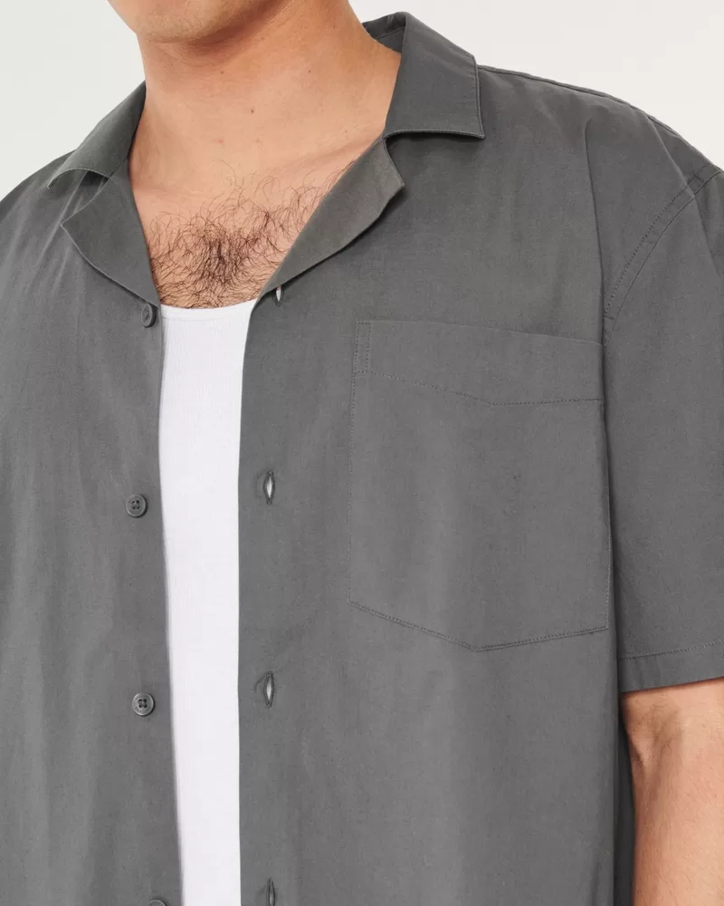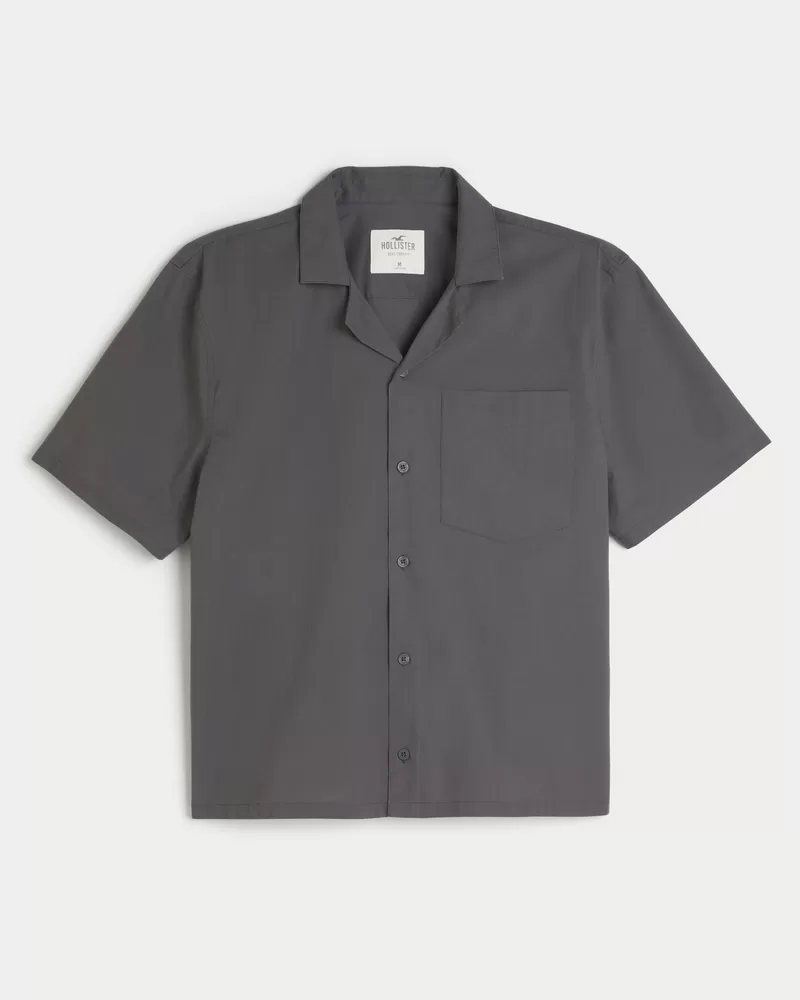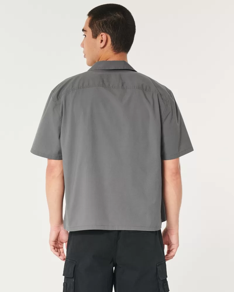 Boxy Cropped Short-Sleeve Poplin Shirt