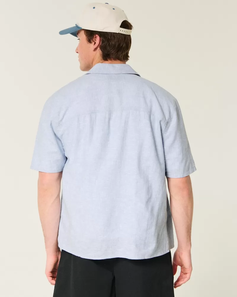 Boxy Linen-Blend Short-Sleeve Shirt,Boxy Linen-Blend Short-Sleeve Shirt