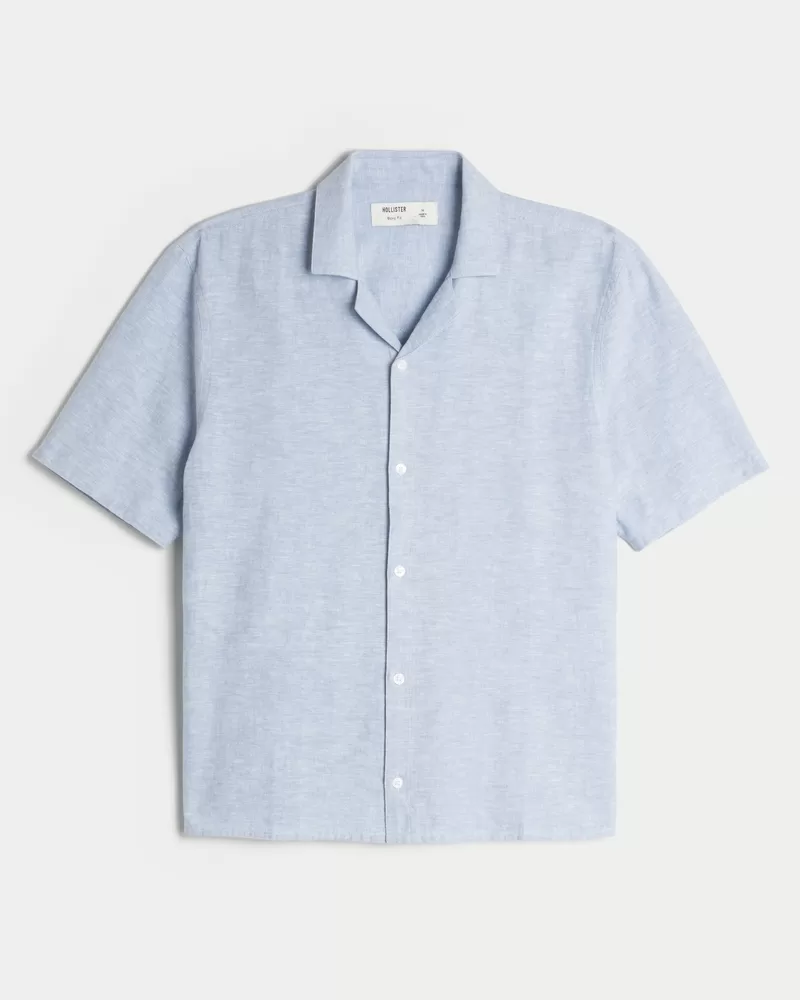 A classic shirt in a soft linen blend, designed with a button closure. Short sleeves, collar. Boxy Fit.