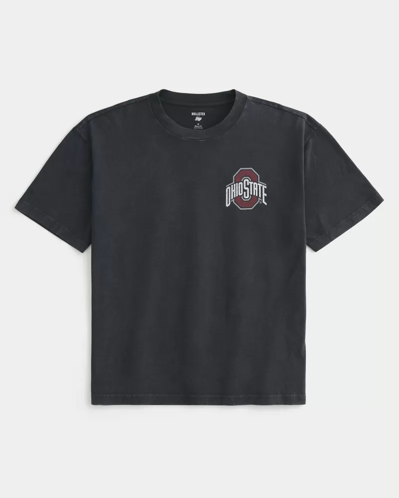 This super soft tee features official licensed Ohio State University Buckeyes Basketball print graphics at the left chest and back. Crew neckline, short sleeves. Boxy Fit.