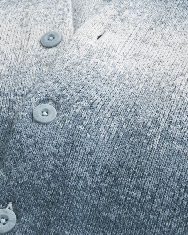This super soft cardigan features an ombre stripe pattern, long sleeves, and a v-neckline. Ribbed hems, button closure. Boxy Fit.