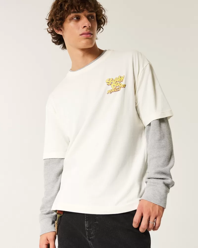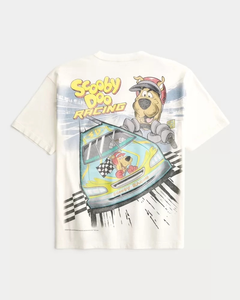 A super soft tee in 100% cotton, featuring official licensed Scooby Doo Racing print graphics at the left chest and back. Crew neckline, short sleeves. Boxy Fit.