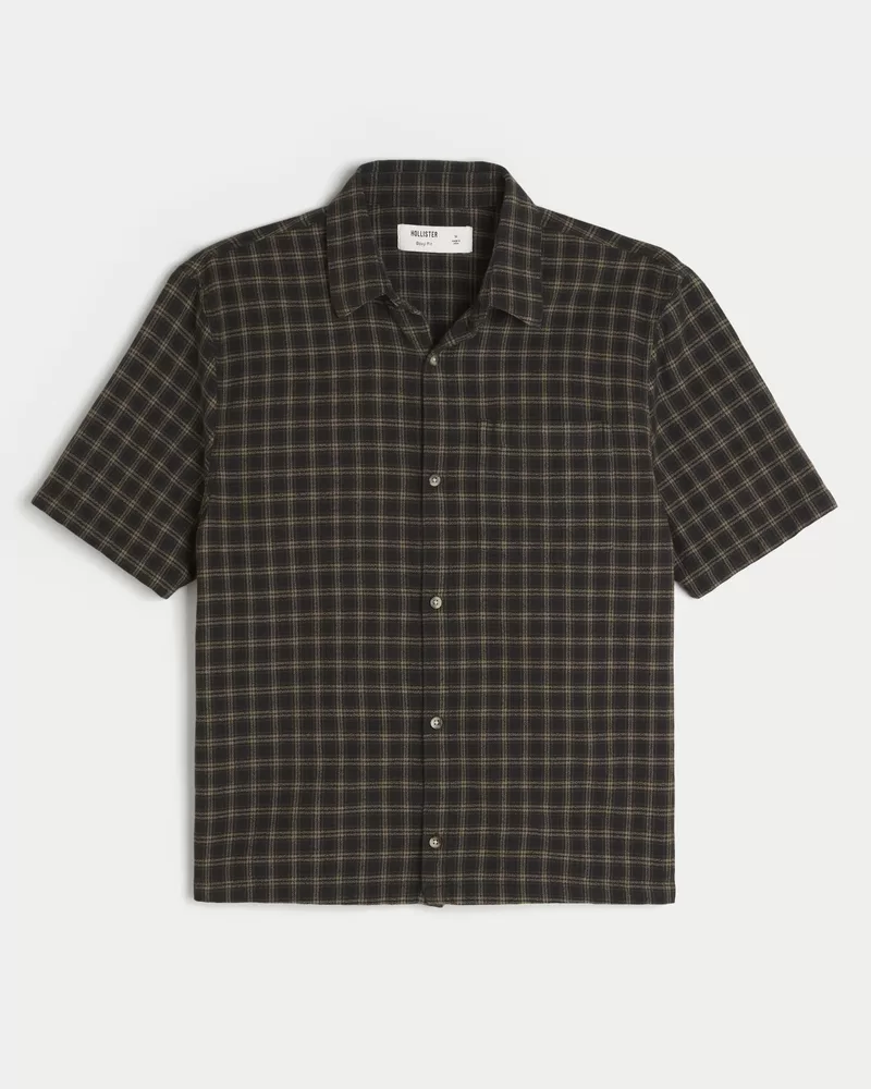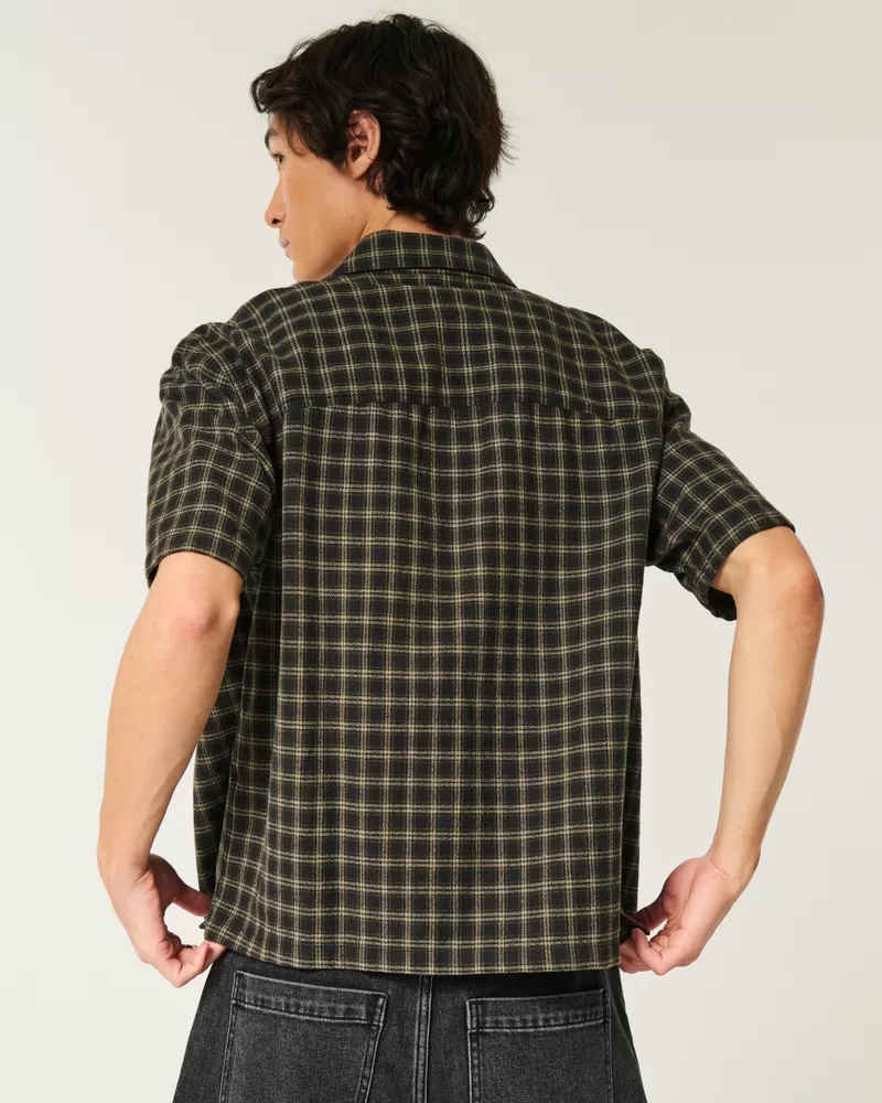 Boxy Short-Sleeve Plaid Shirt