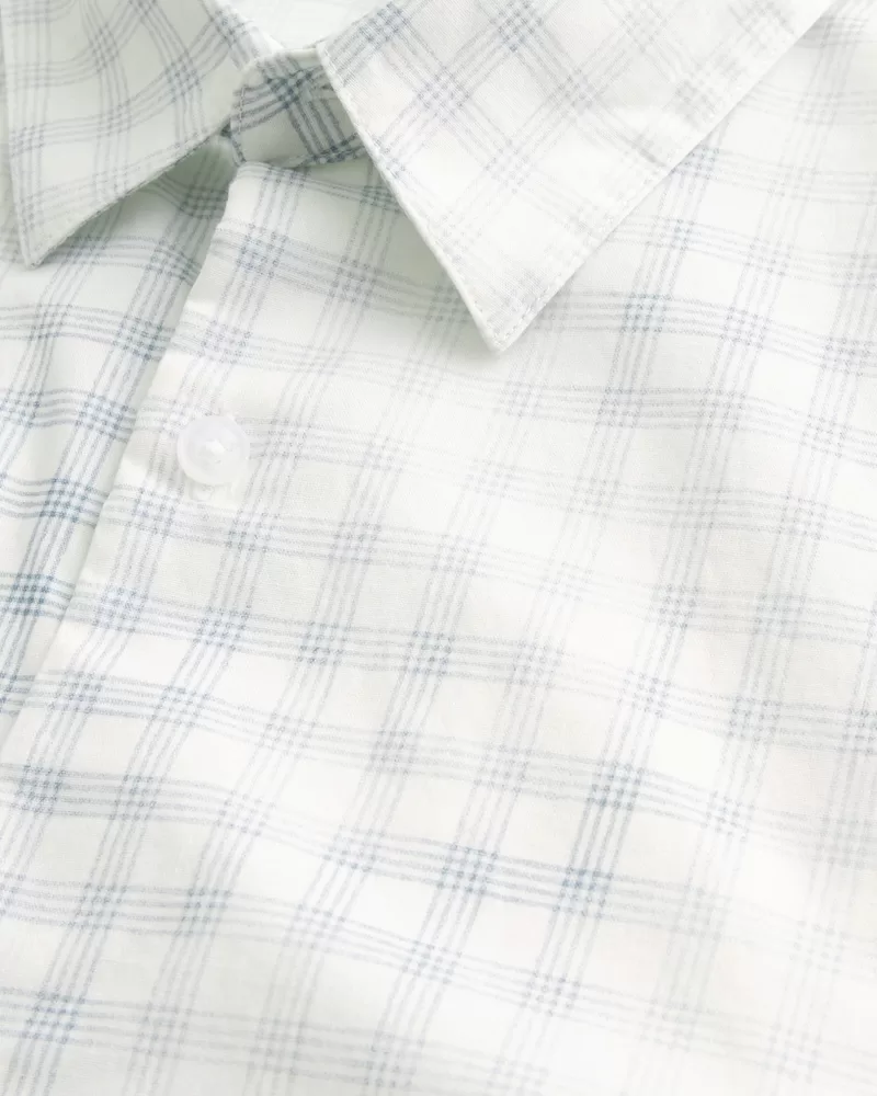 A classic short-sleeve shirt in poplin fabric, featuring a classic pattern and washed look. Full button closure, collar. Boxy Fit.