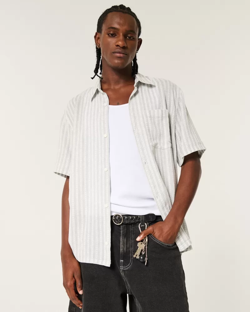 A classic, comfortable shirt with short sleeves and a full button closure. Left chest pocket, collar. Boxy Fit. Imported.