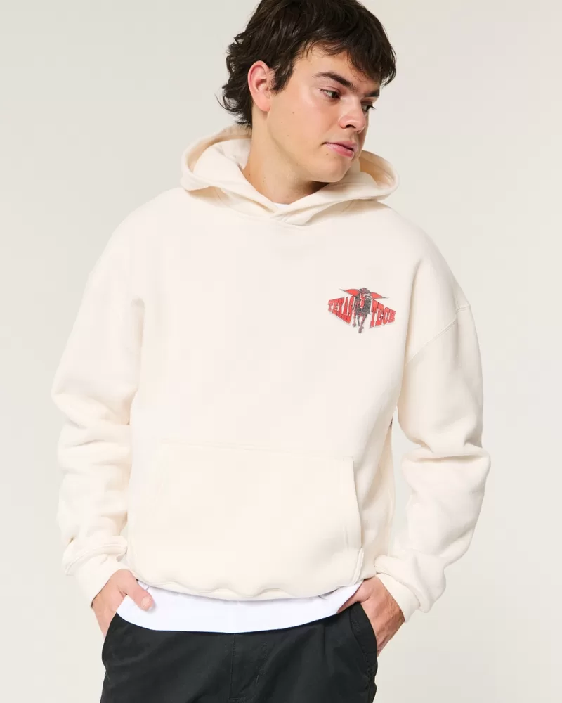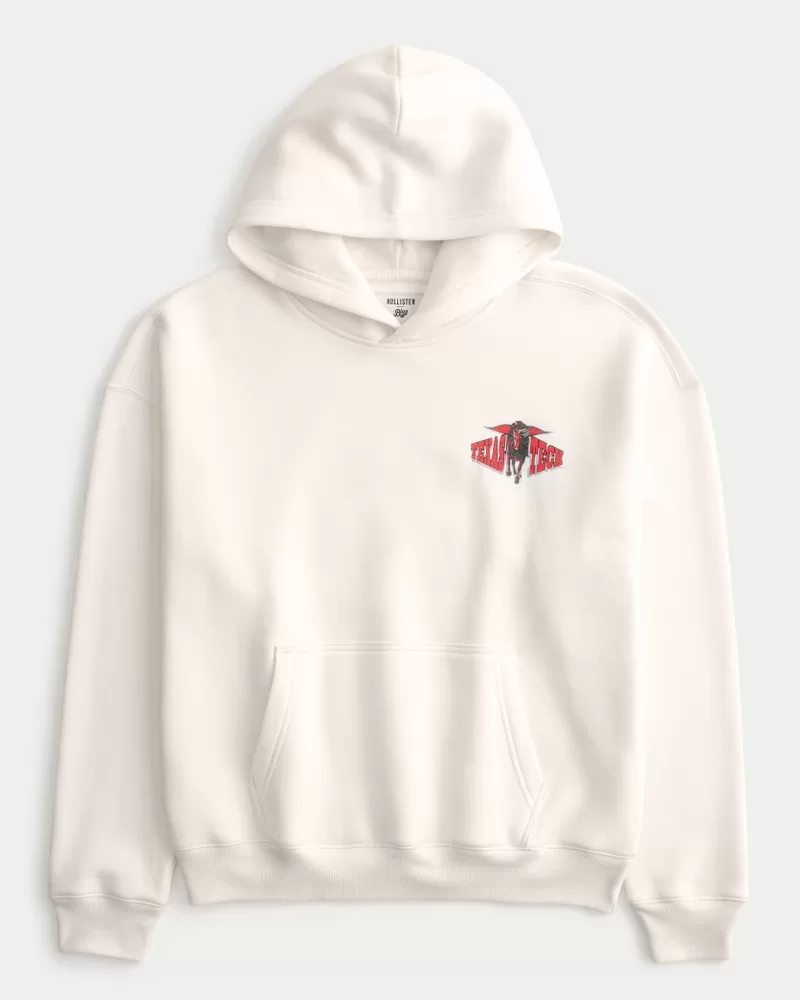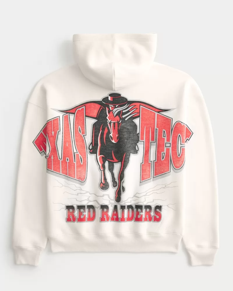 A super soft fleece hoodie featuring official licensed Texas Tech University Red Raiders print graphics at the left chest and back. Hood, front pouch pocket, long sleeves. Boxy Fit.