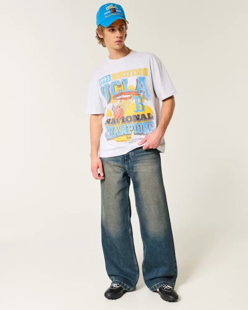 A super soft 100% cotton tee featuring official licensed UCLA Bruins print graphics. Crew neckline, short sleeves. Boxy Fit.