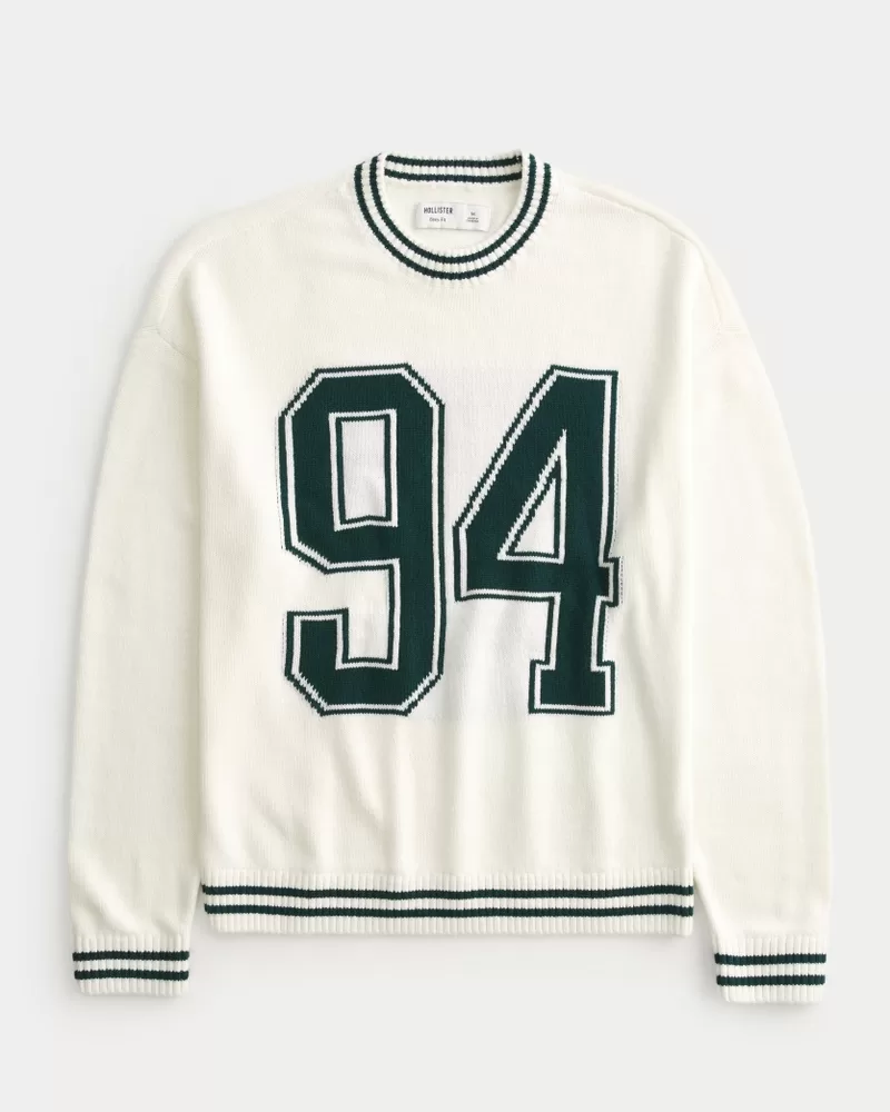 Super soft and comfortable, this sweater features a varsity-inspired 94 number graphic and tipped trims. Crew neckline, long sleeves, ribbed trims. Boxy Fit. Imported.