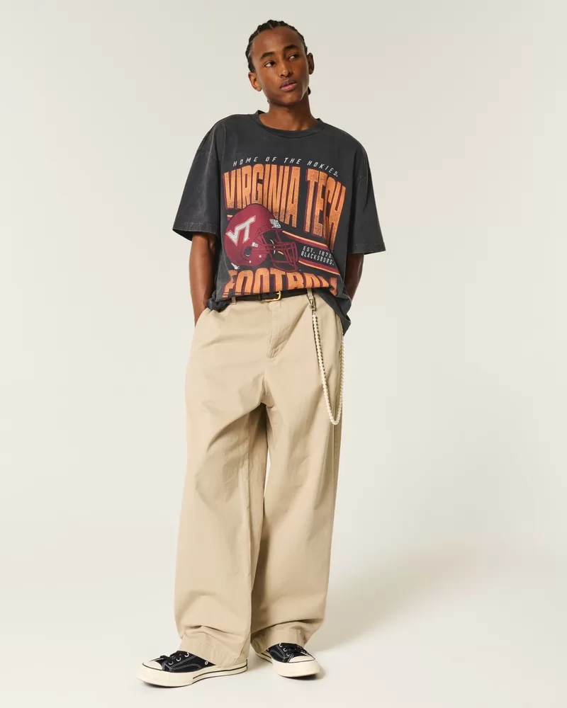 This 100% cotton tee features official licensed Virginia Tech Hokies print graphics. Short sleeves, crew neckline. Boxy Fit.