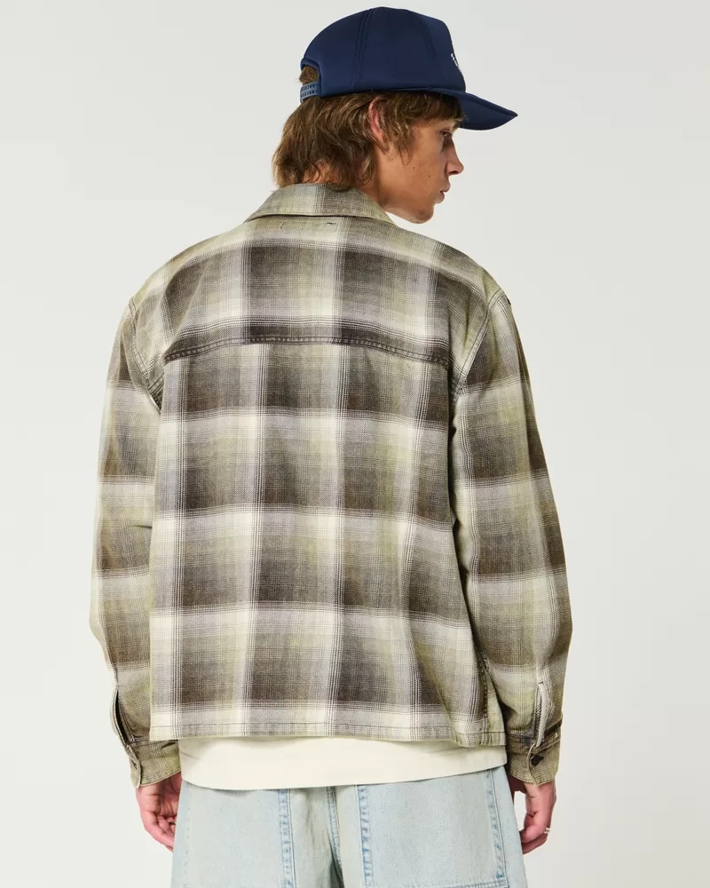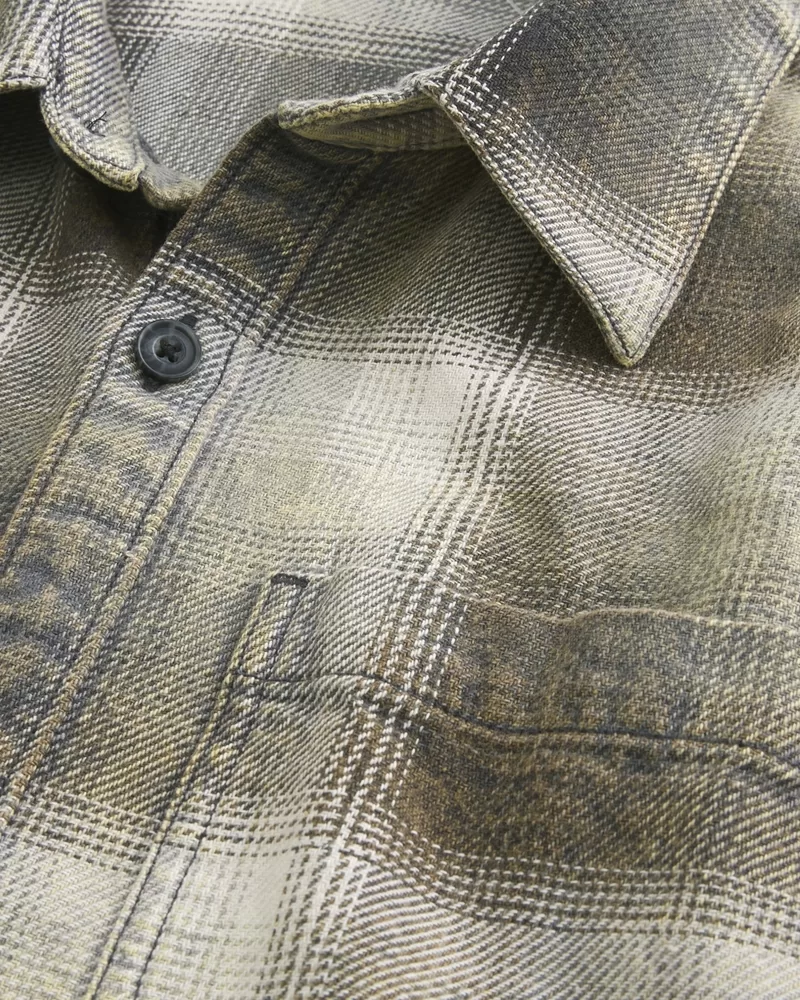A super soft flannel overshirt with a full button closure and washed look. Collar, left chest pocket, long sleeves. Boxy Fit.