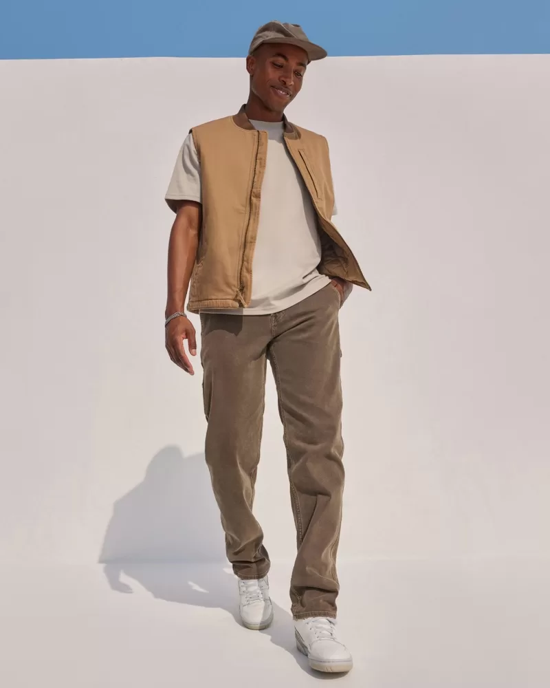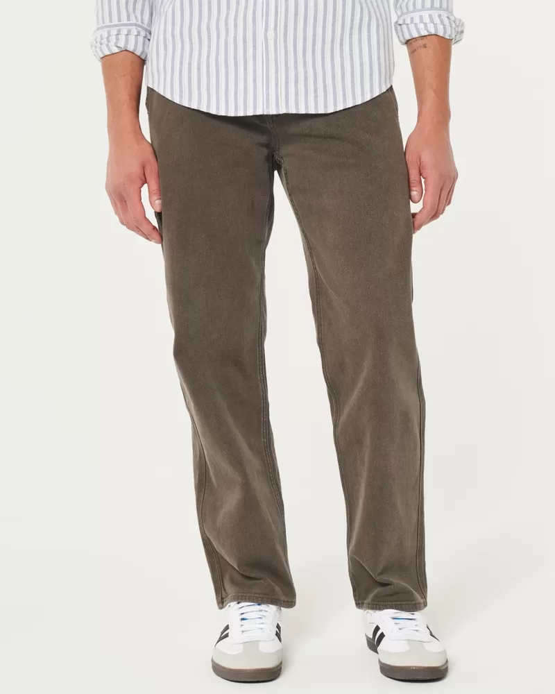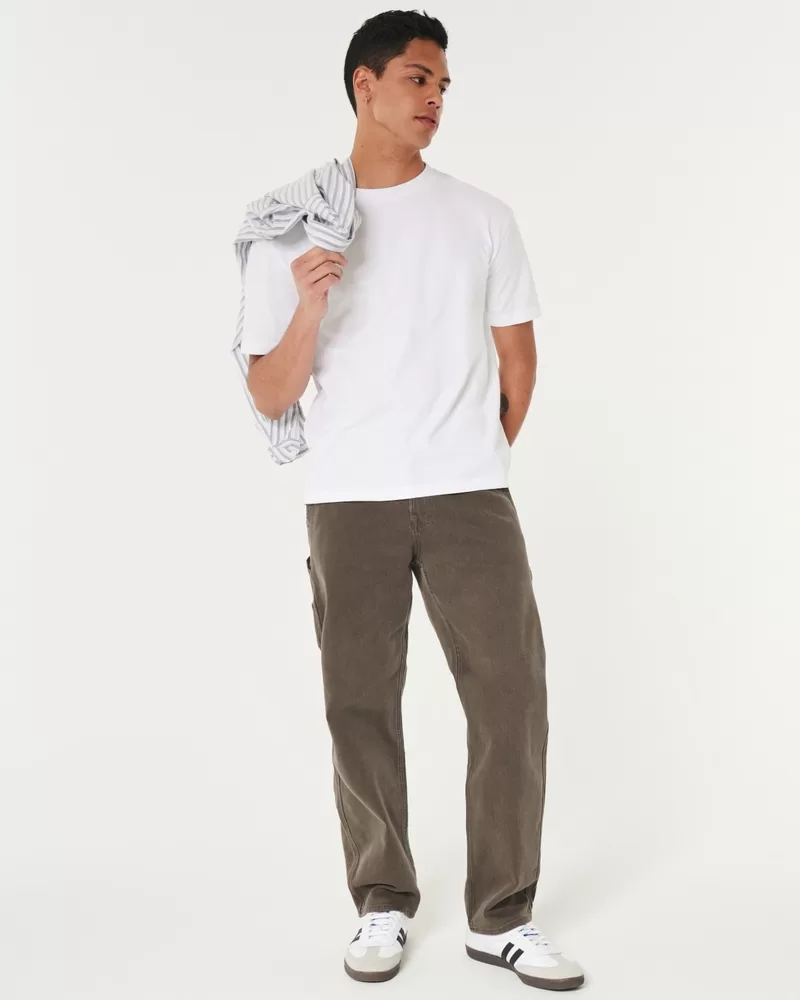 Comfortable jeans in brown made with our Hollister Epic Flex denim. Designed with a loose fit: relaxed leg, wide opening. Carpenter styling with a left leg hammer loop and back right utility pockets.