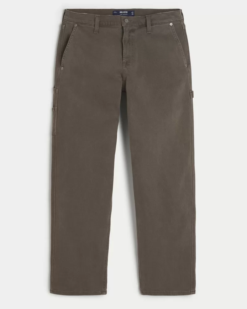 Comfortable jeans in brown made with our Hollister Epic Flex denim. Designed with a loose fit: relaxed leg, wide opening. Carpenter styling with a left leg hammer loop and back right utility pockets. Imported.