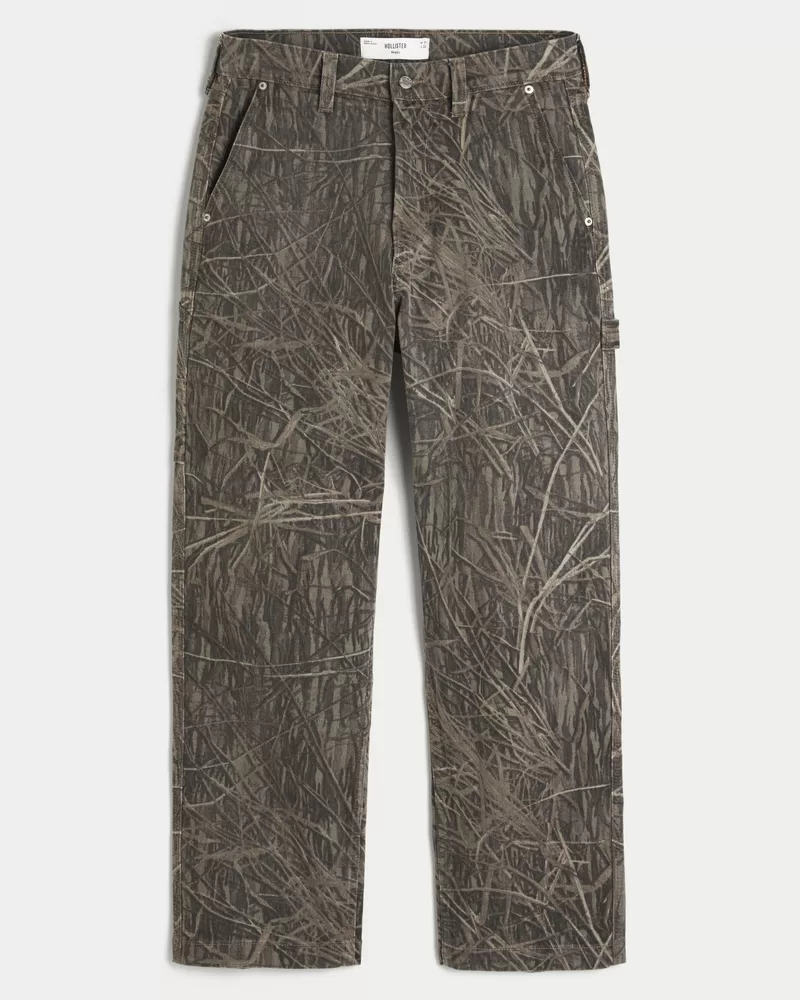 Comfortable denim painter jeans designed with a baggy leg, left loop detail and extra pockets. All-over camo pattern.
