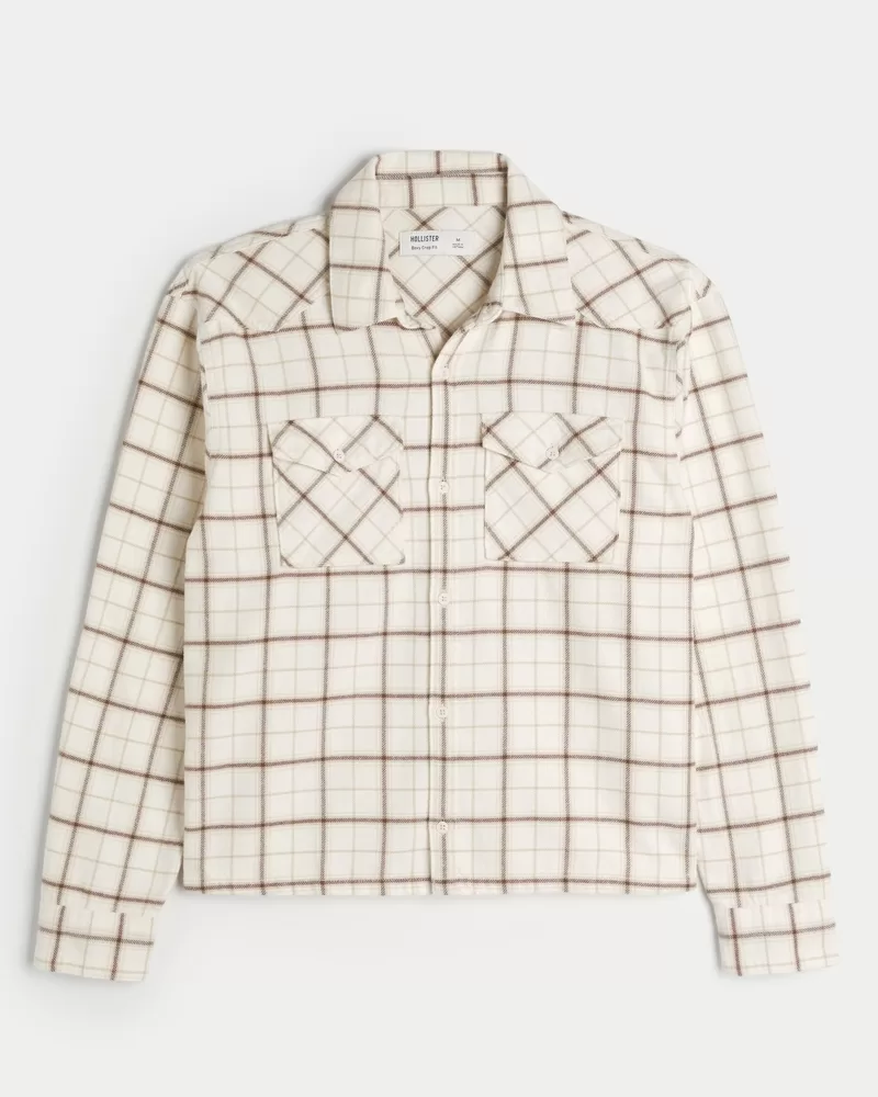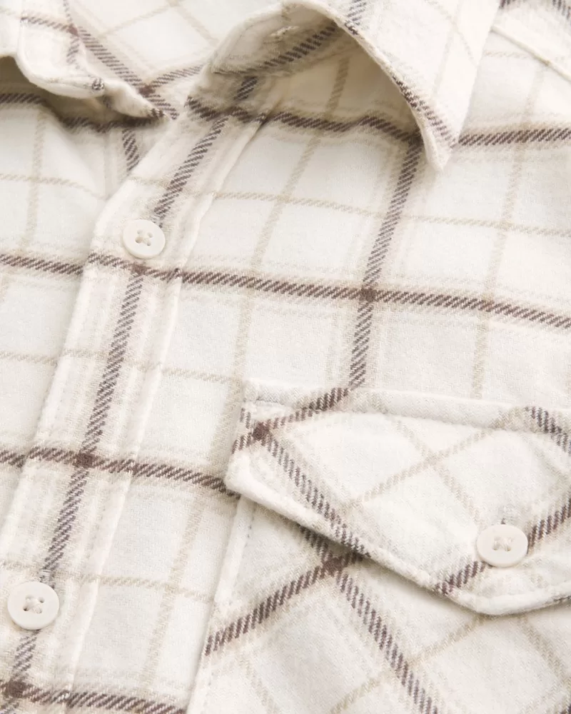 An ultra-comfortable shirt in 100% cotton flannel. Button closure, long sleeves, collar, chest pockets. Cropped length. Boxy Fit. Imported.