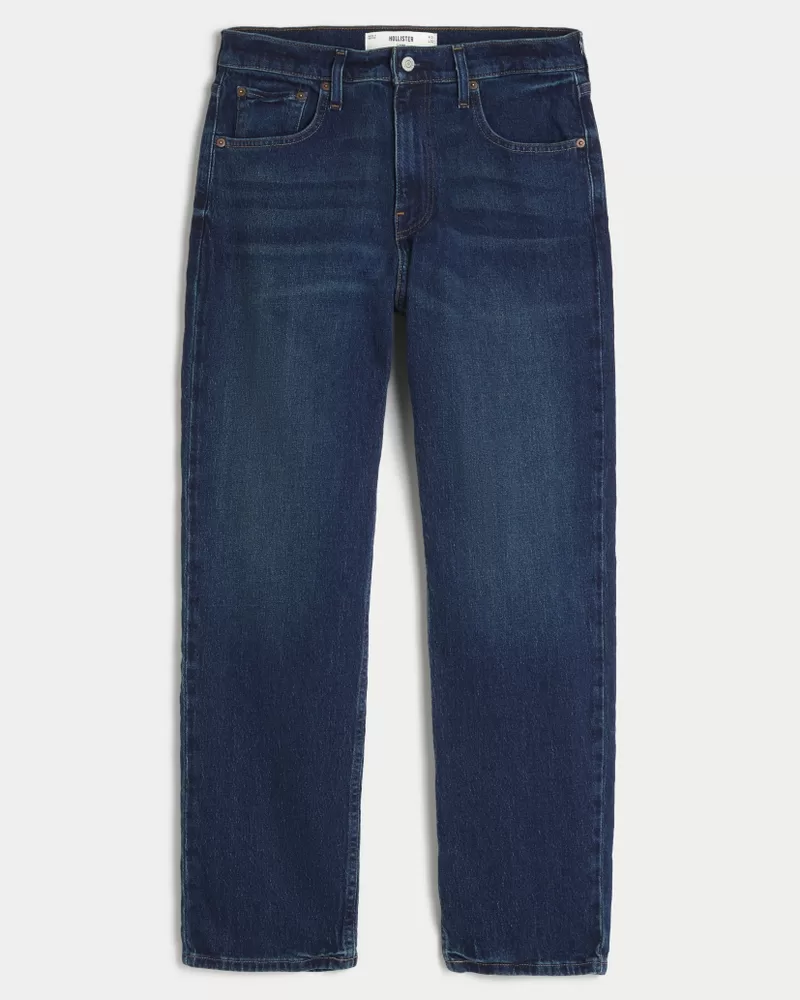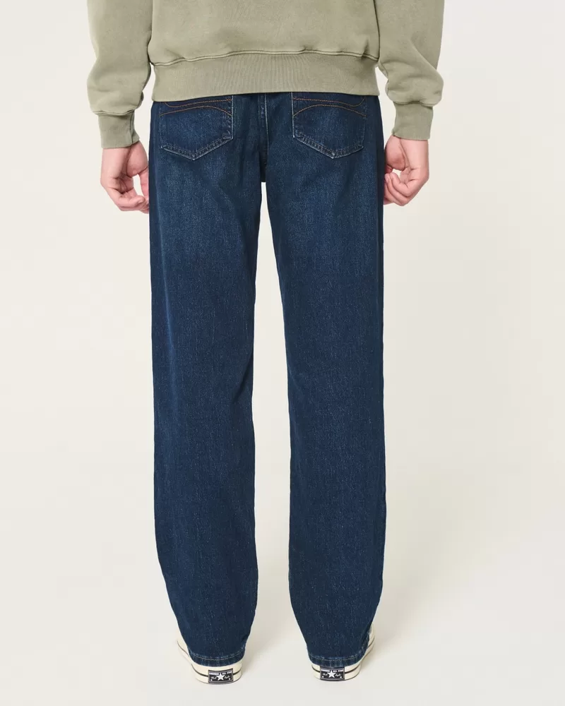 Ultra-comfortable jeans in a dark wash, designed with a loose leg from top to bottom. Subtle fading and whiskering.