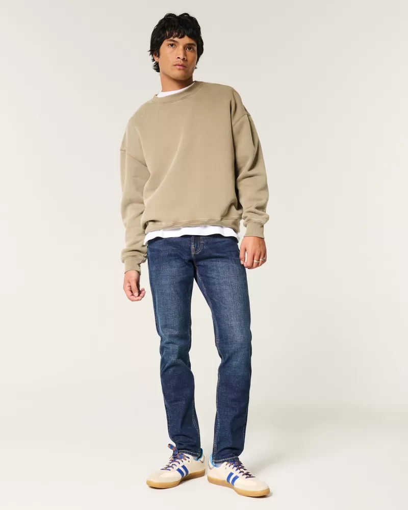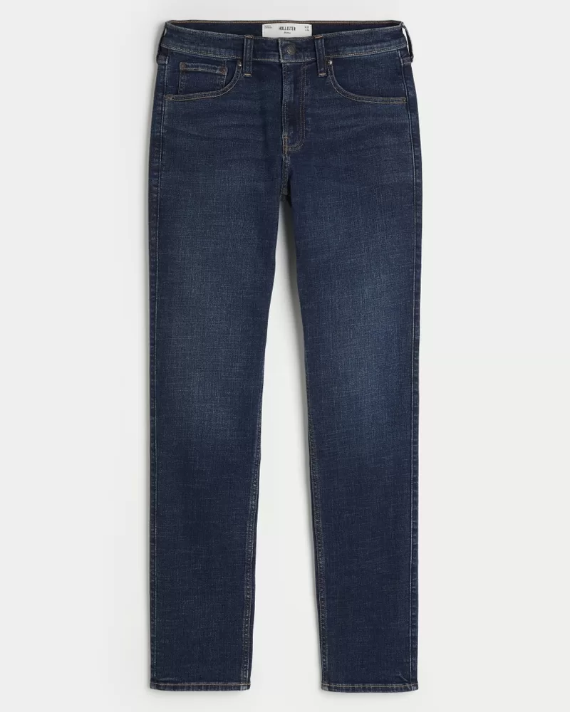 Ultra-comfortable denim jeans designed with our signature slim leg. Dark wash, fading and whiskering.