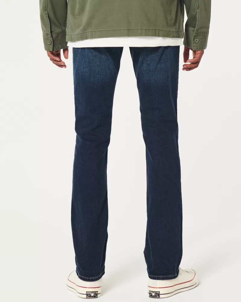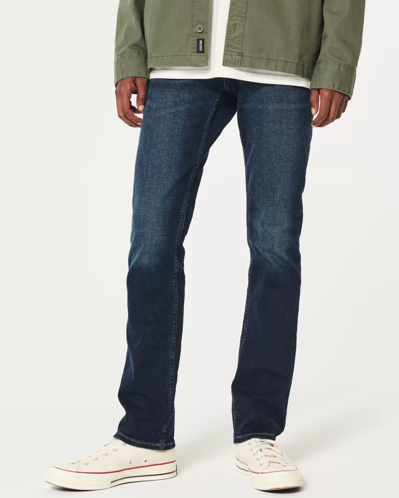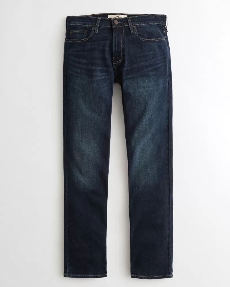 Designed with a slim fit through the hip and thigh with a 15.5” leg opening, featuring dark wash denim made with Hollister Epic Flex stretch, fading and whiskering, a right coin pocket and iconic back pocket embroidery.