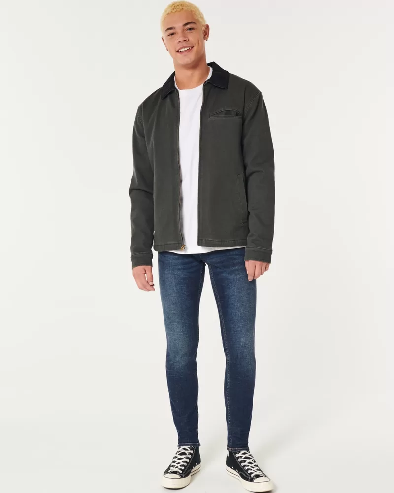 Designed with a skinny fit through the hip and thigh with a 12.75” leg opening, these jeans are made with Advanced Stretch denim, a dark wash, fading and whiskering, five-pocket styling and iconic back pocket embroidery