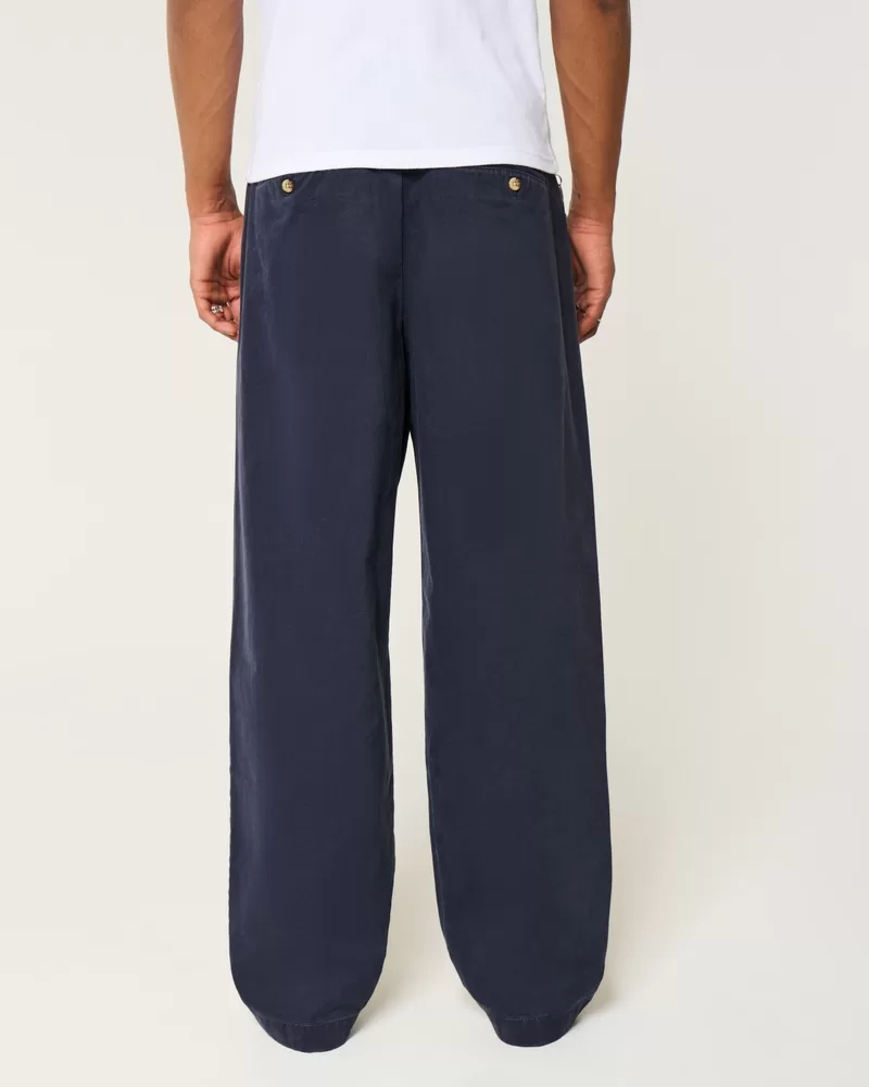 Ultra-comfortable pants in twill fabric, designed with an extreme baggy leg and a pleated waist for a tailored look.