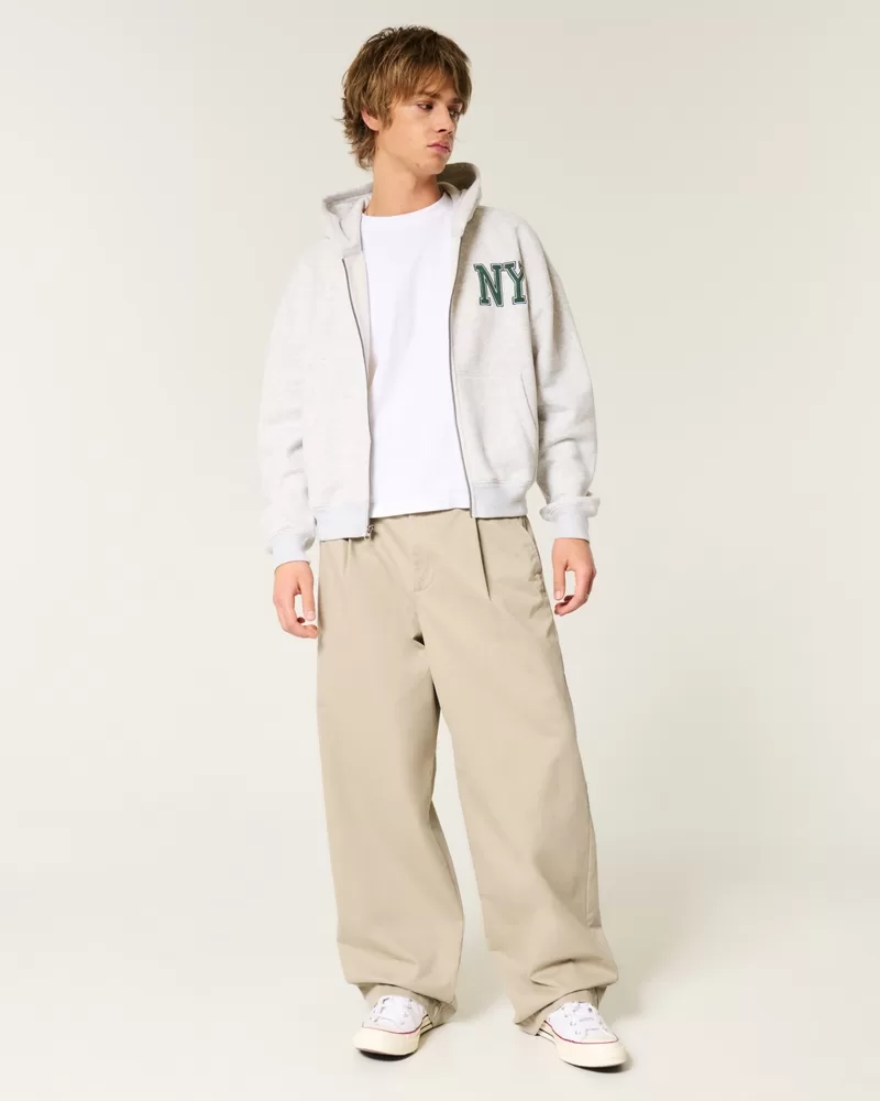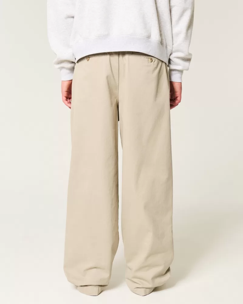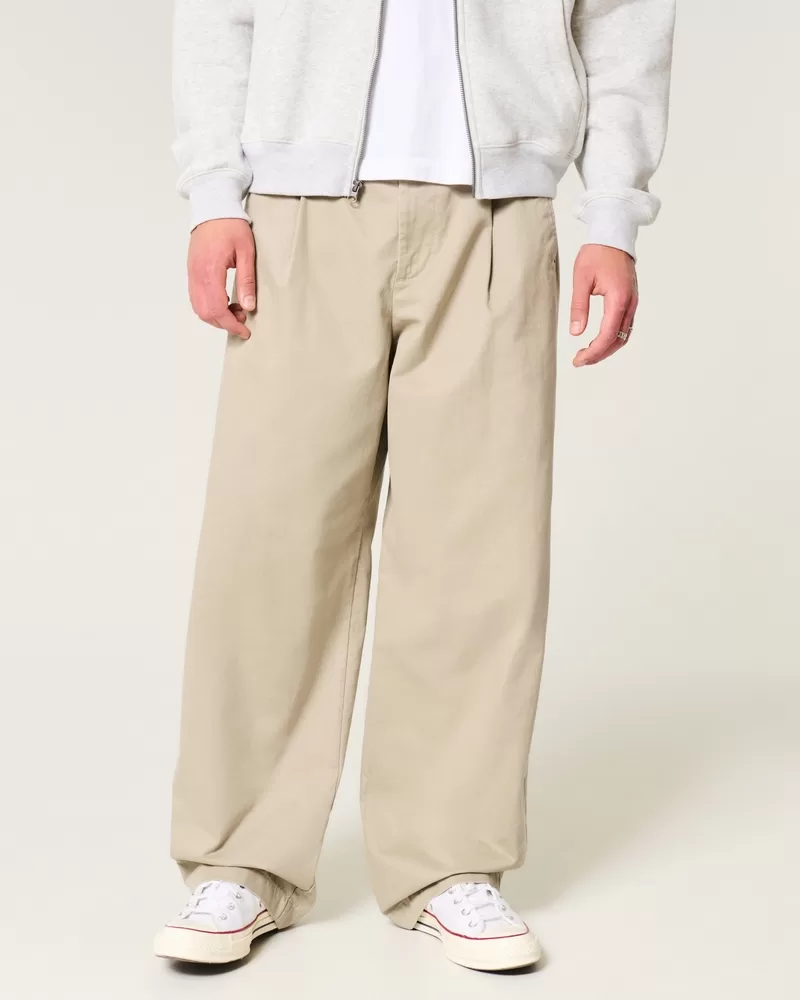 Ultra-comfortable pants in twill fabric, designed with an extreme baggy leg and a pleated waist for a tailored look.