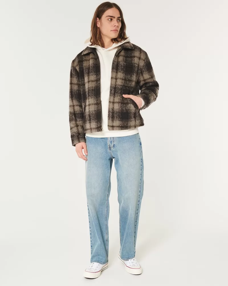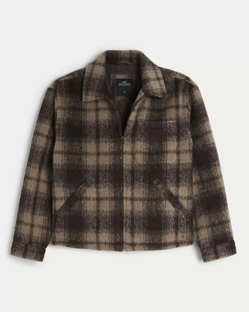Your new favorite shirt jacket features a super soft, fuzzy exterior with a classic plaid pattern. Full zip-up closure, front pockets, left chest pocket.