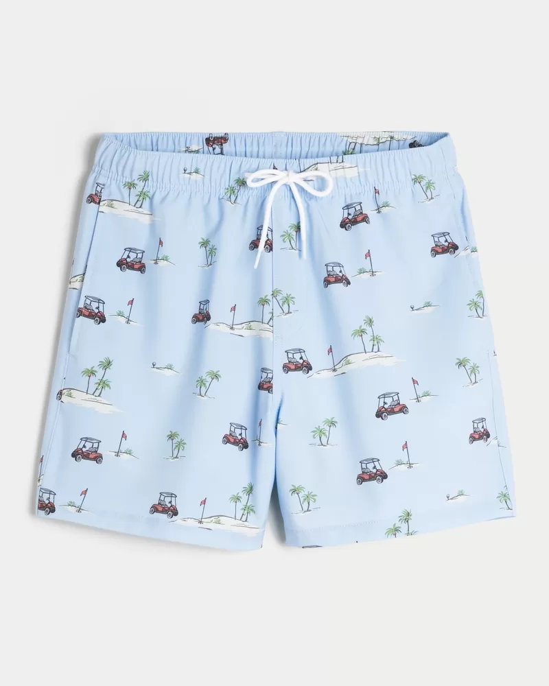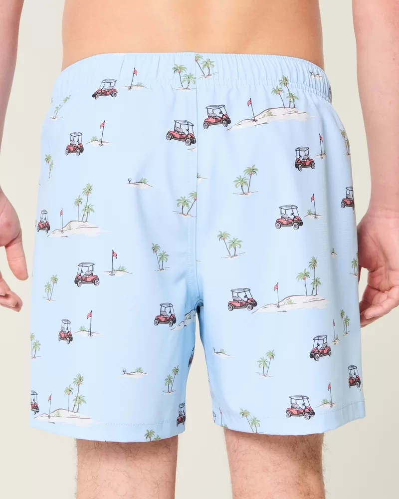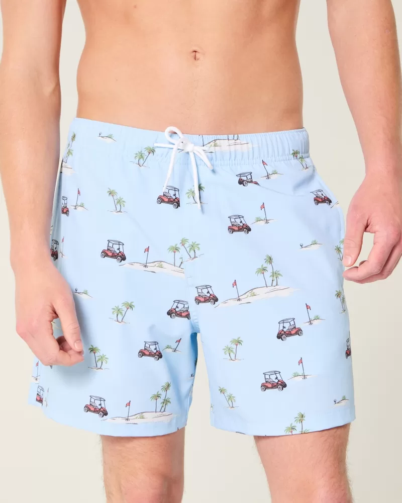 Shorter-length swim trunks that hit mid-thigh. Featuring comfortable 4-way stretch swim fabric and a 6″ inseam. Front pockets, mesh lining. Imported.