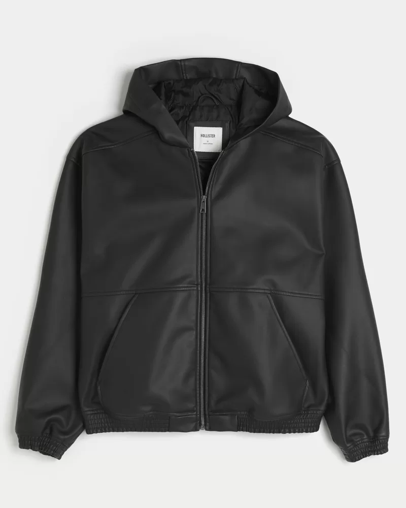 Hooded Vegan Leather Jacket