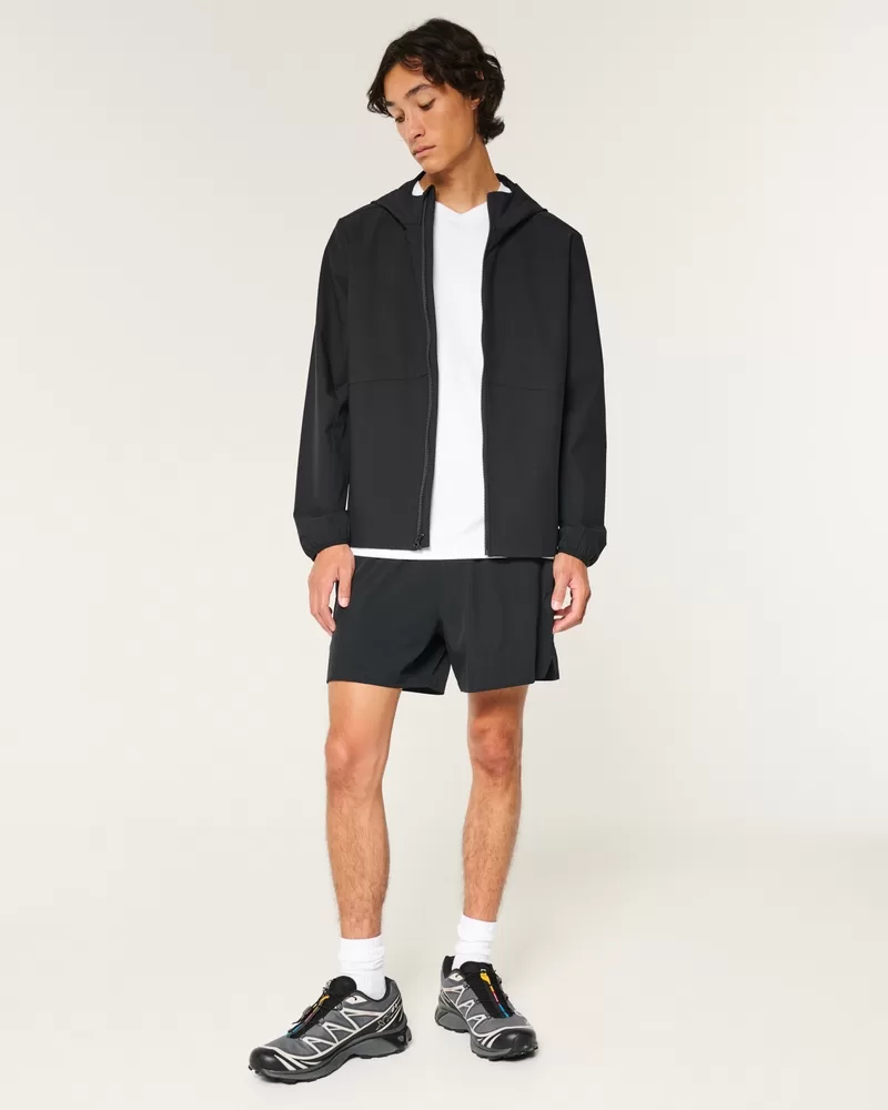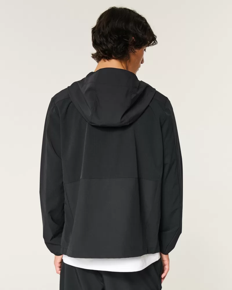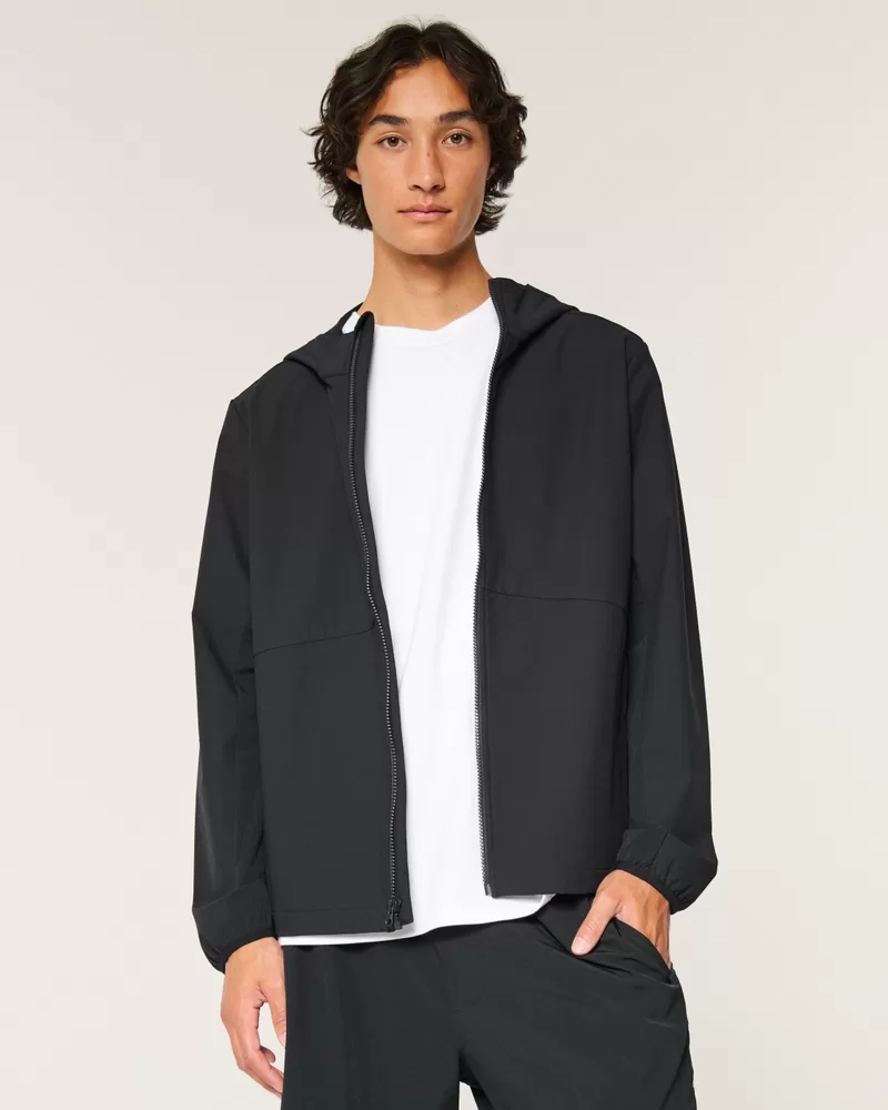 Your go-to jacket features a breathable shell that’s also wind-resistant. Underarm zipper vent, side entry pockets, full zip-up closure, hood.