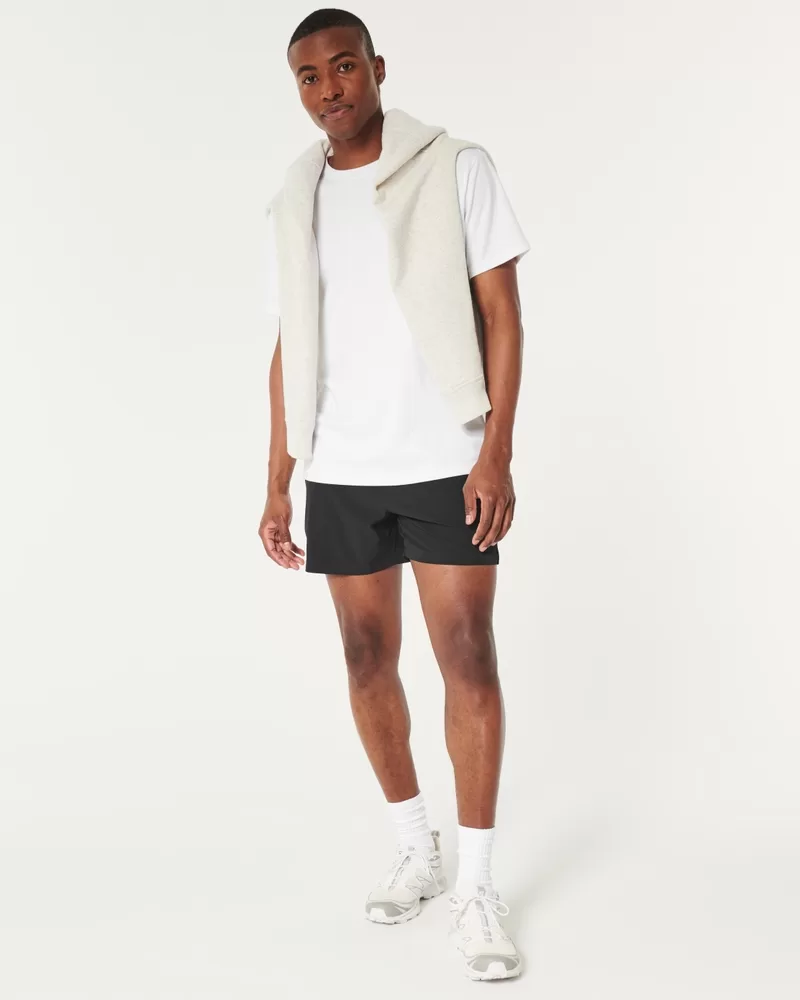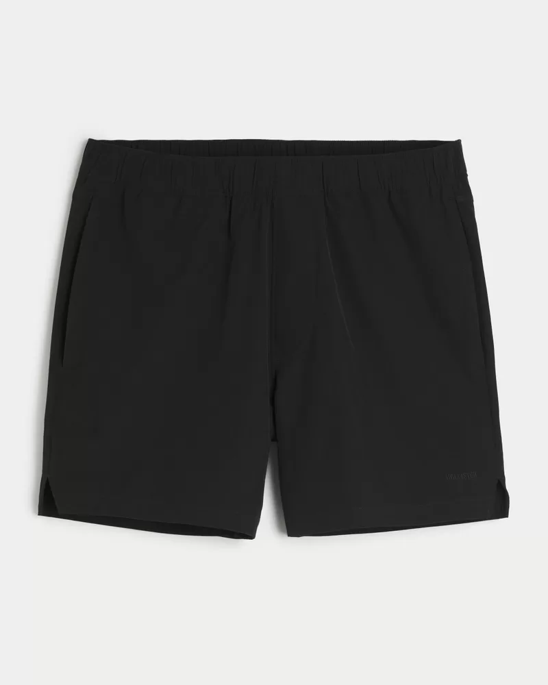 A sporty fabric makes these the most versatile shorts in your lineup for outdoor hangs, gaming, impromptu swims and everything in between. Banded waist, 5″ inseam, Hollister Epic Flex fabric, embroidered logo detail. Imported.