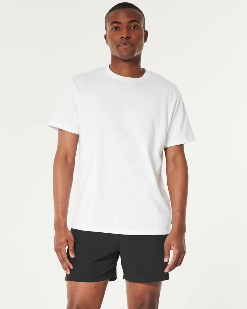 A sporty fabric makes these the most versatile shorts in your lineup for outdoor hangs, gaming, impromptu swims and everything in between. Banded waist, 5″ inseam, Hollister Epic Flex fabric, embroidered logo detail.