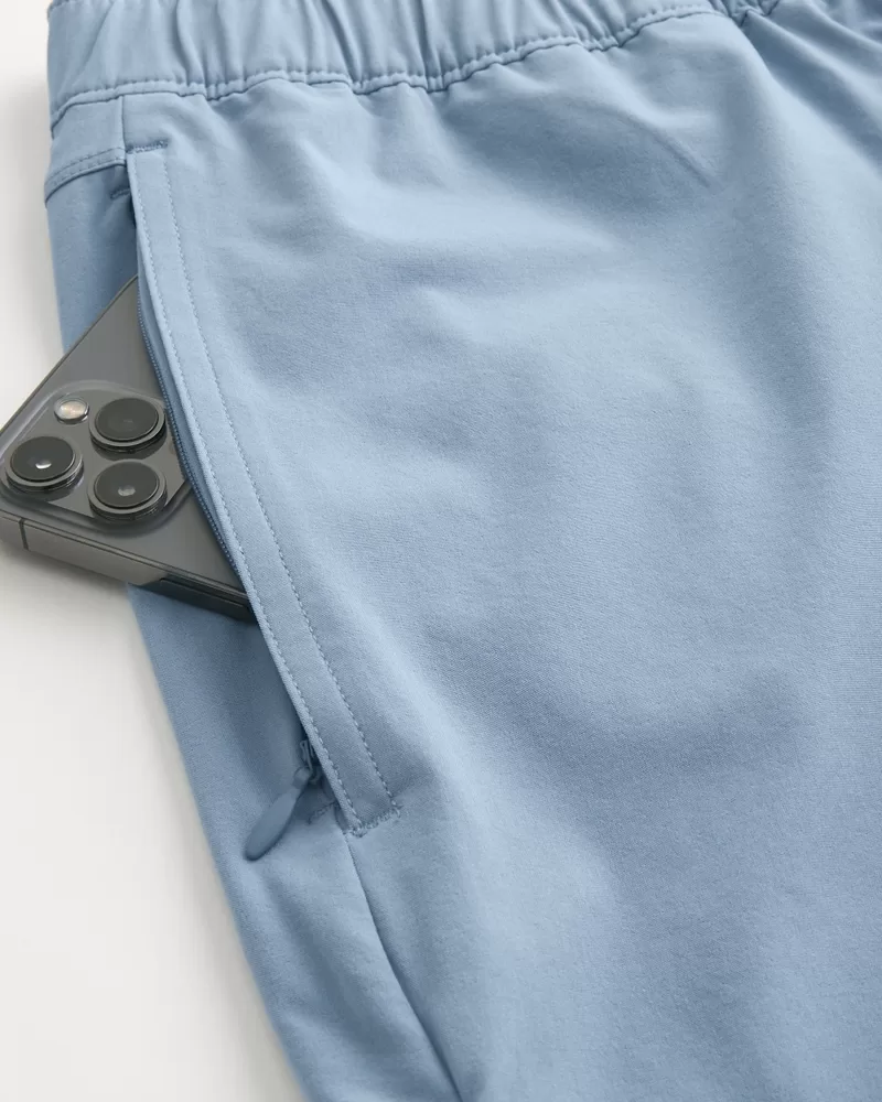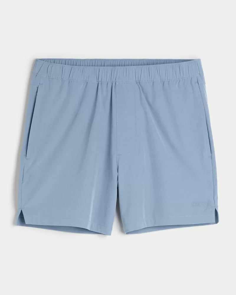 Ultra-comfortable active shorts with stretch that hit mid-thigh. Drawstring waist, right zipper pocket, front pockets. 5″ inseam.