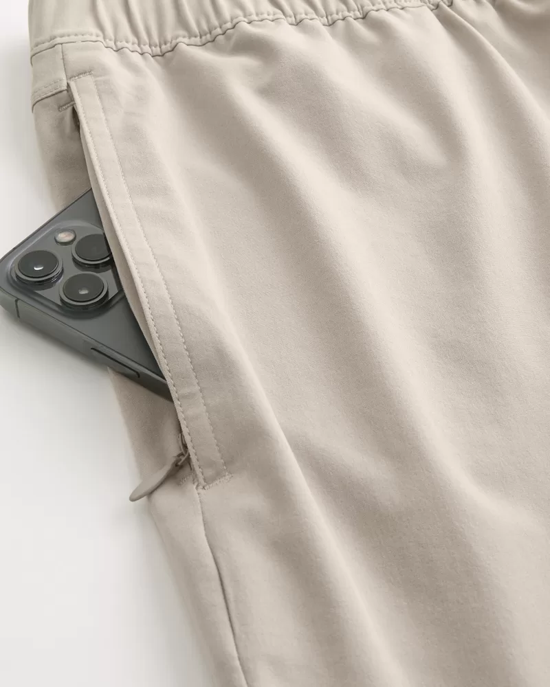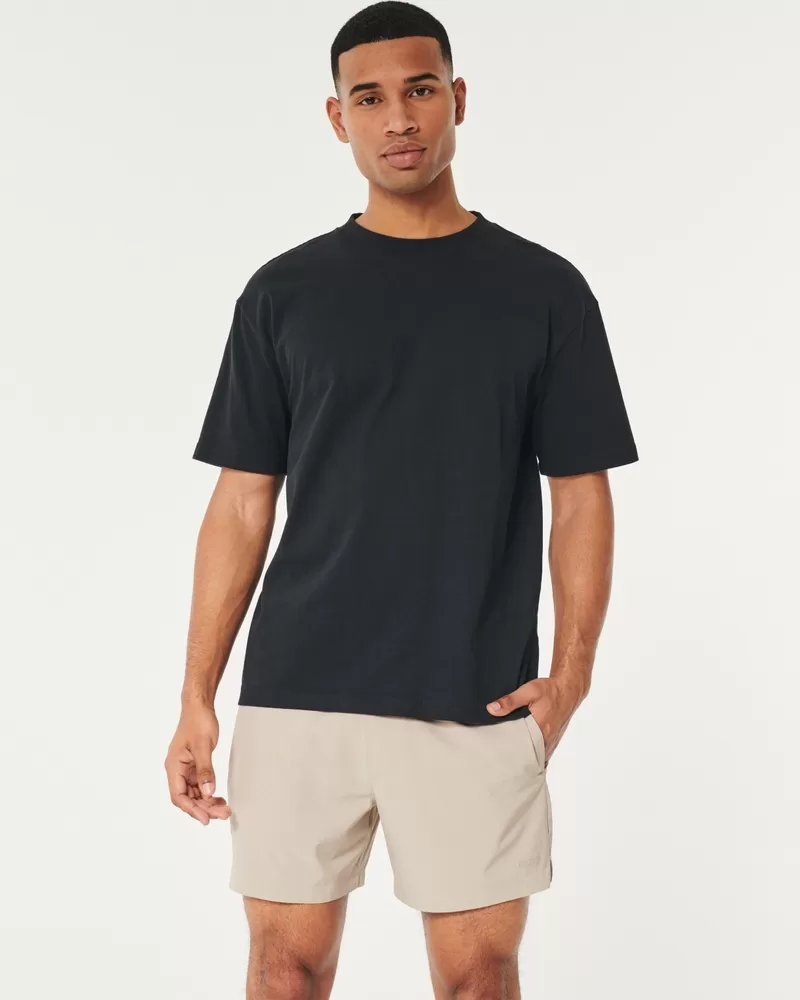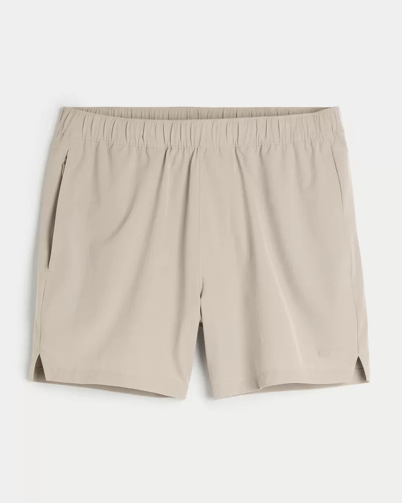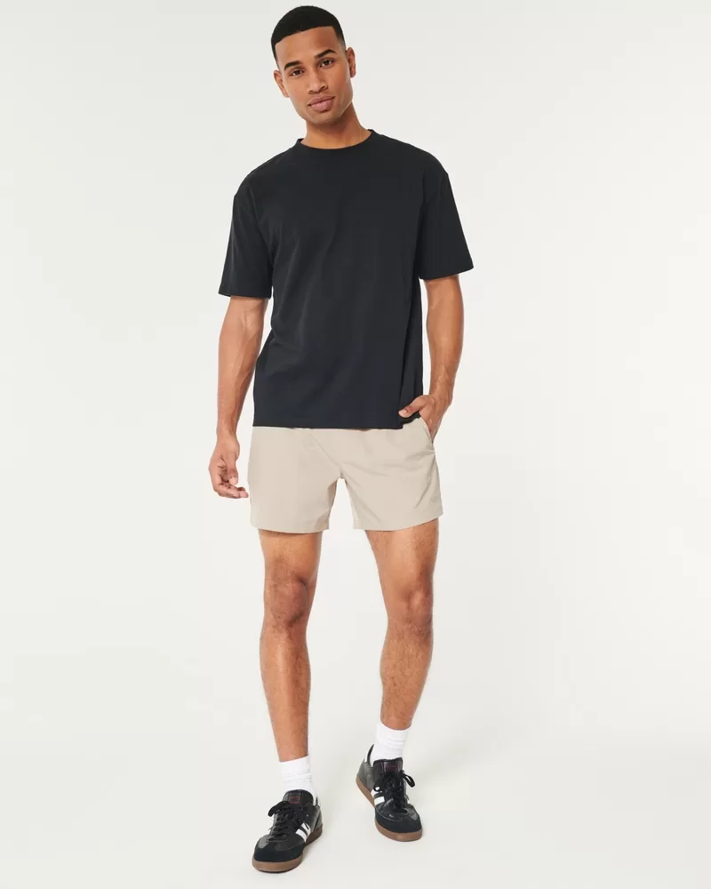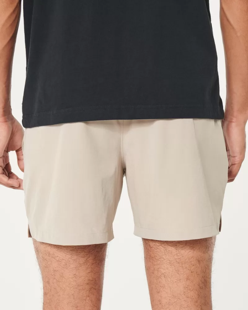 A sporty fabric makes these the most versatile shorts in your lineup for outdoor hangs, gaming, impromptu swims and everything in between. Banded waist, 5″ inseam, Hollister Epic Flex fabric, embroidered logo detail.