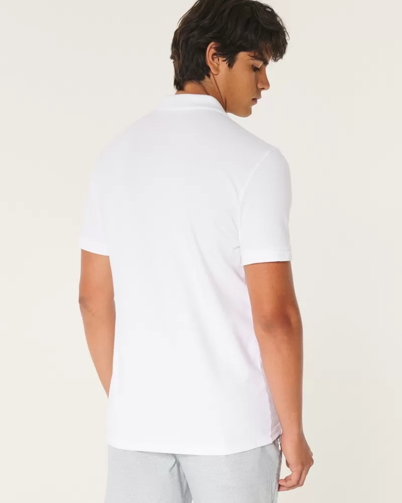 Super soft with stretch, this comfortable polo features a button placket and embroidered logo icon at left chest. Advanced Stretch pique fabric. Slim Fit.