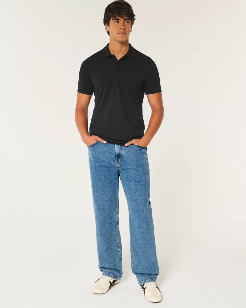 Super soft with stretch, this comfortable polo features a button placket and embroidered logo icon at left chest. Advanced Stretch pique fabric. Slim Fit.