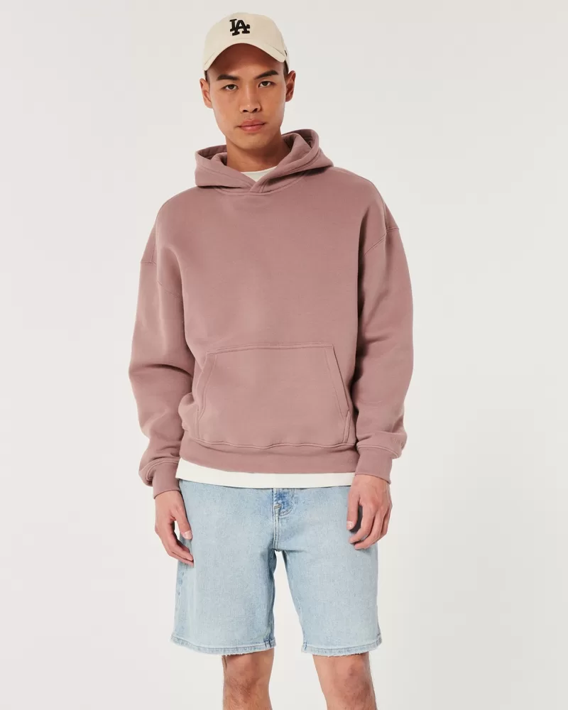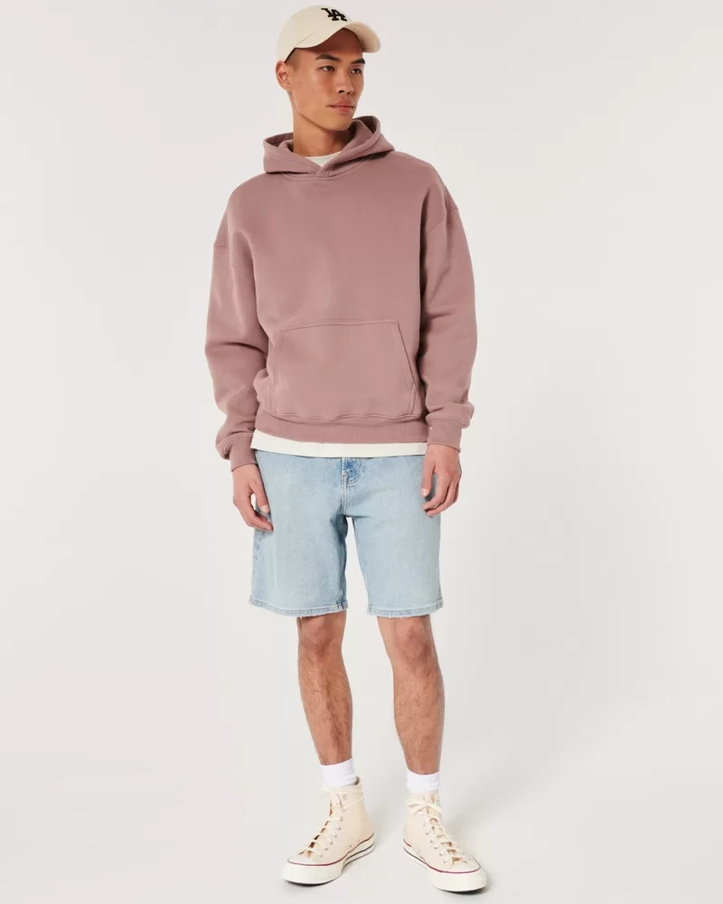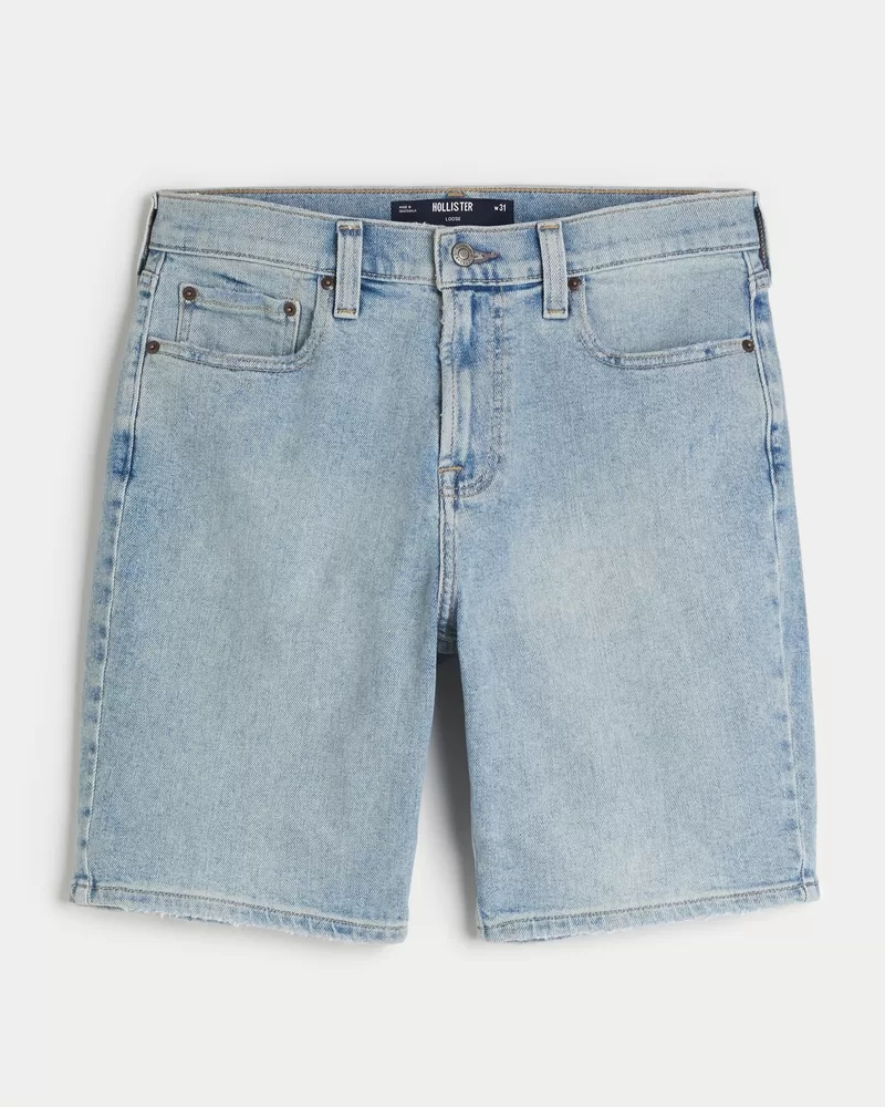 Light wash shorts in Hollister Epic Flex denim, designed with a loose fit and 9″ inseam. Fading.
