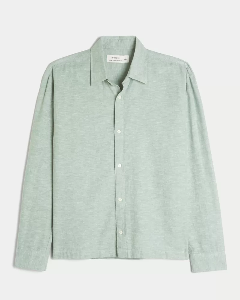 An ultra-comfortable shirt in a soft linen-cotton blend. Full button closure, collar, long sleeves.