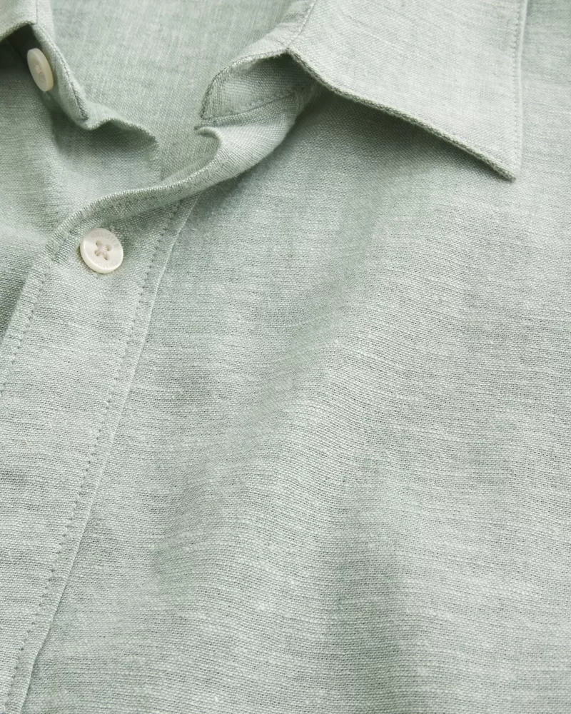 An ultra-comfortable shirt in a soft linen-cotton blend. Full button closure, collar, long sleeves. Imported.