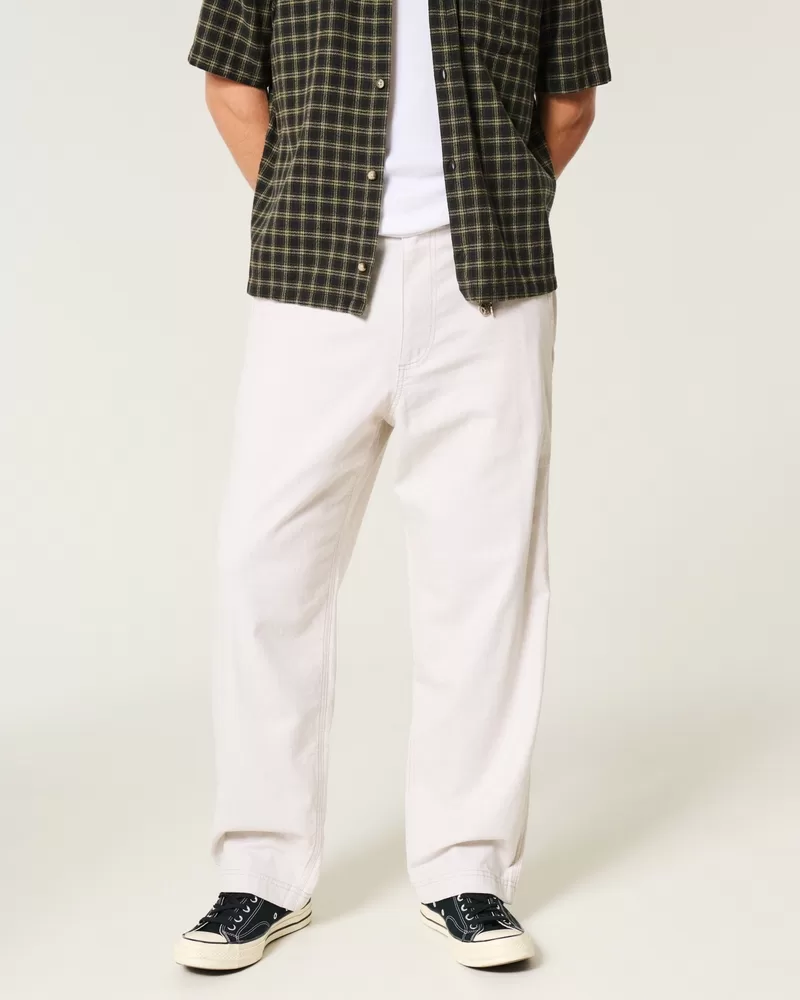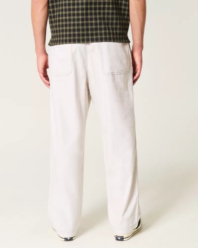 Linen-Blend Flex-Waist Baggy Pants